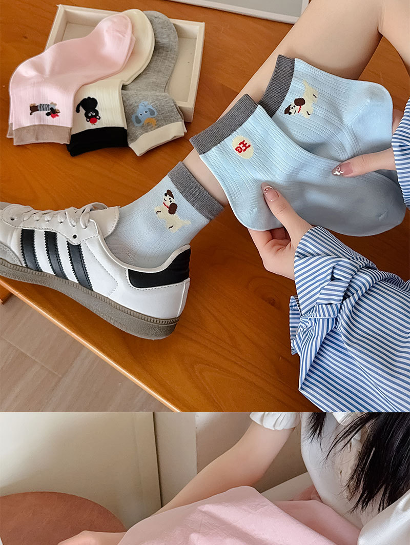 정품 뼈없는 만화 면화 양말 봄과 여름 AB 한국 강아지 짧은 튜브 컬러 매칭 닥스 훈트 개 양말과 Birkenstock 신발스토어 가기
