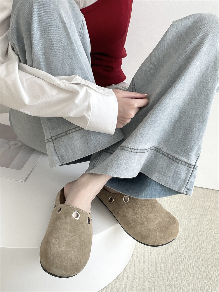 Birkenn 하프 드래그 2025 새로운 금속 라운드 버클 프로스트 가죽 페달 헤드 하프 드래그스토어 가기