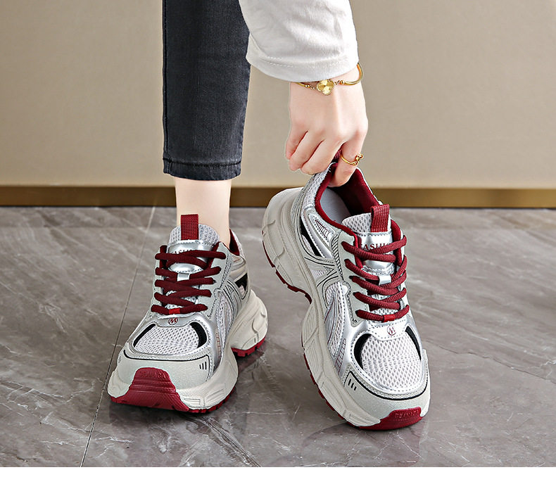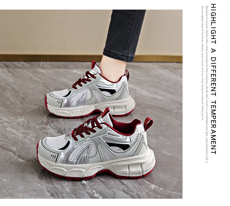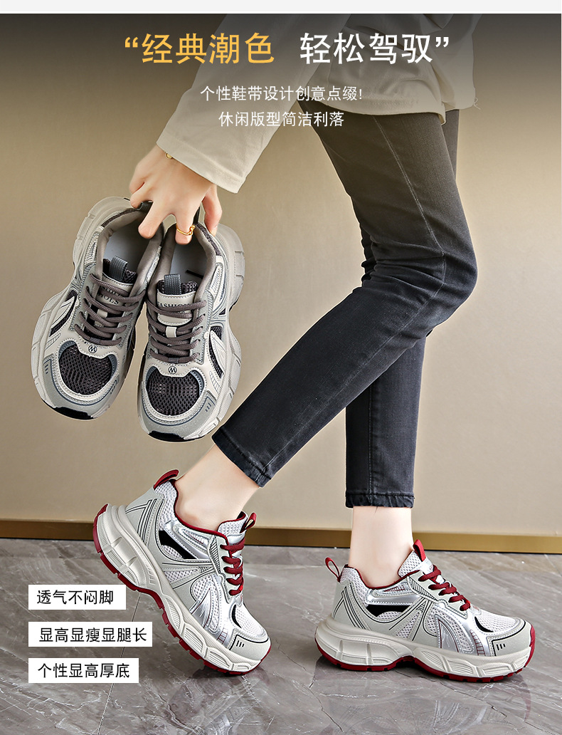 인터넷 유명 인사 두꺼운 난간 토르 신발 여성 2025 봄 새로운 레저 스포츠 여성 신발 메쉬 슈퍼 인기 슬림 핏 러닝 슈즈