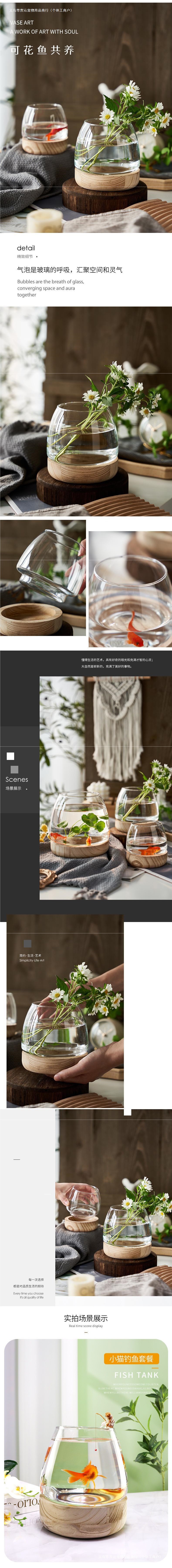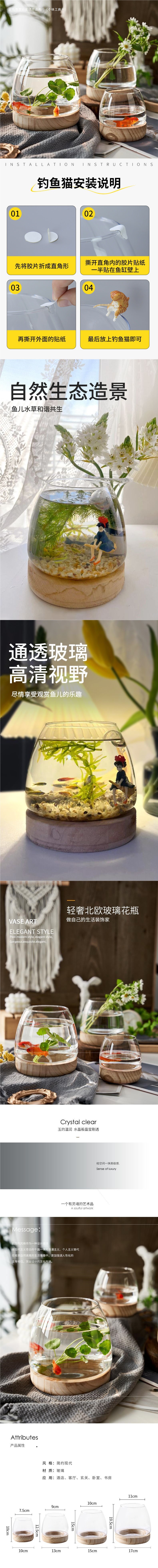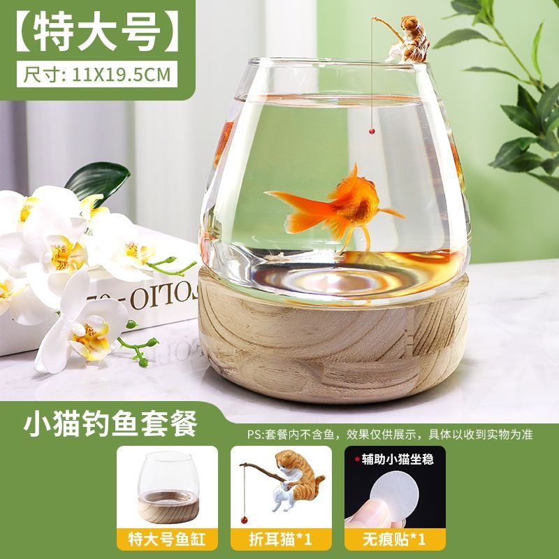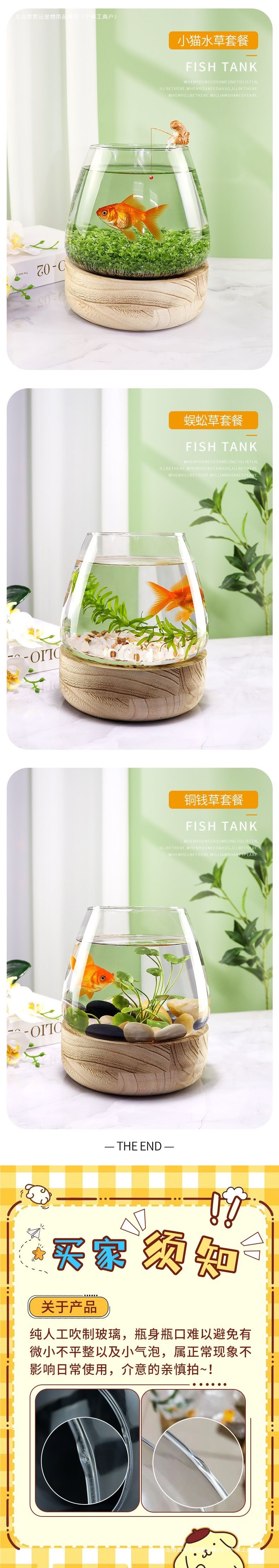 [1615명이 즐겨찾기] 간단한 유리 나무 트레이 수조 원형 물고기 병 사무실 데스크탑 장식품 크리 에이 티브 마이크로