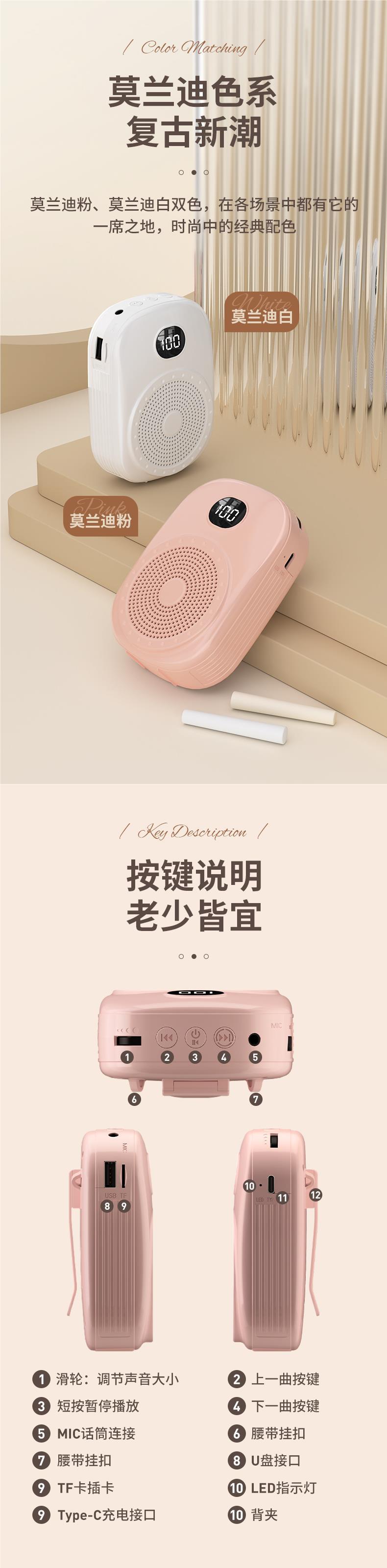 • 무선 버전 - 핑크 [무선 마이크/유선 겸용 + LED 스크린 디스플레이 + 30배 대용량 + 하울링 방지]