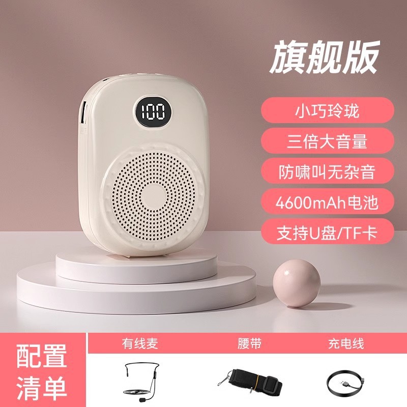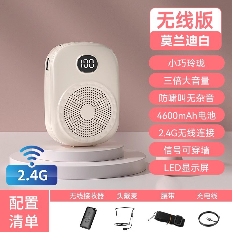 • 무선 버전 - 오프화이트 [무선 마이크/유선 겸용 + LED 스크린 디스플레이 + 30배 대용량 + 하울링 방지]