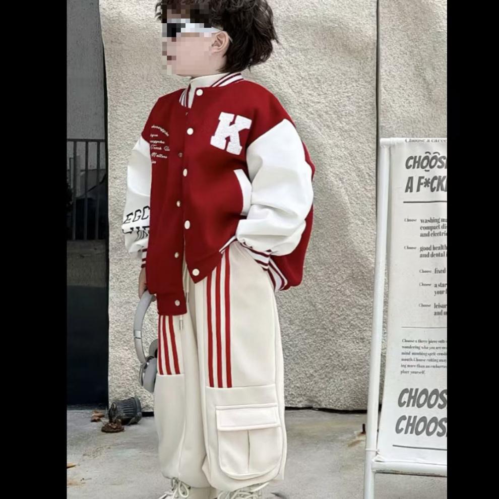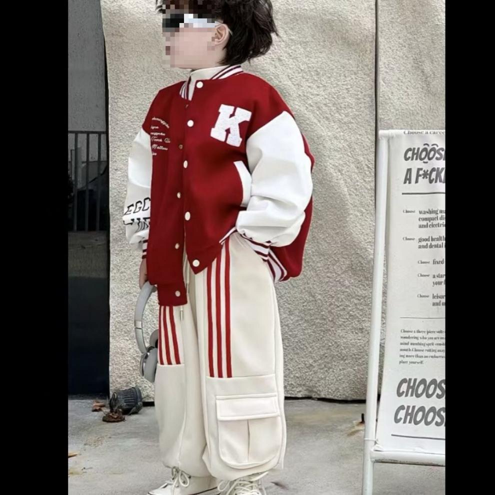 소년 야구 세트 세트 가을 새로운 어린이 한국 컬러 블록 재킷 어린이 느슨한 캐주얼 바지 투피스 세트스토어 가기
