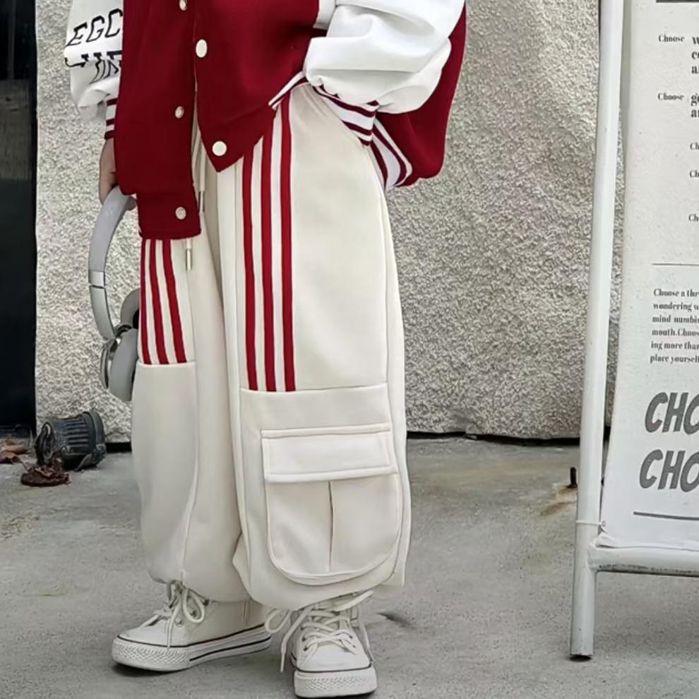 • 레드 야구 재킷 + 캐주얼 팬츠 [투피스 세트] 슈트
