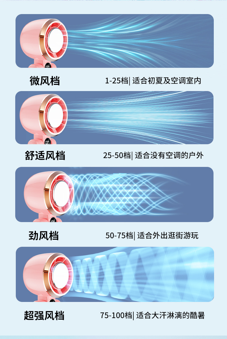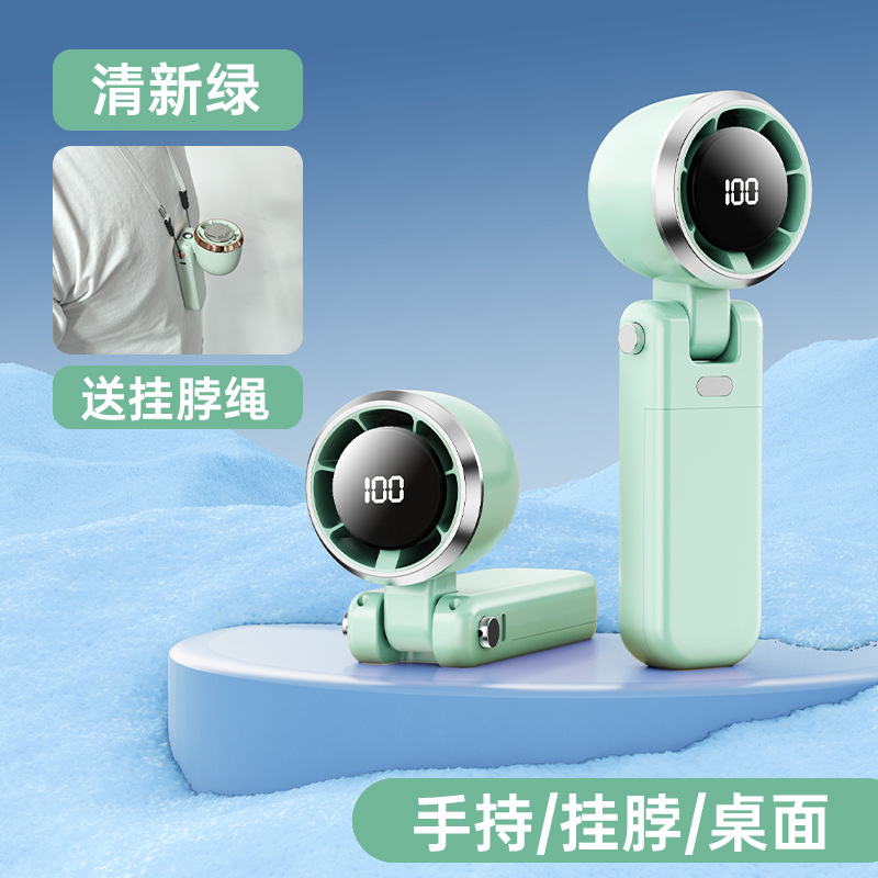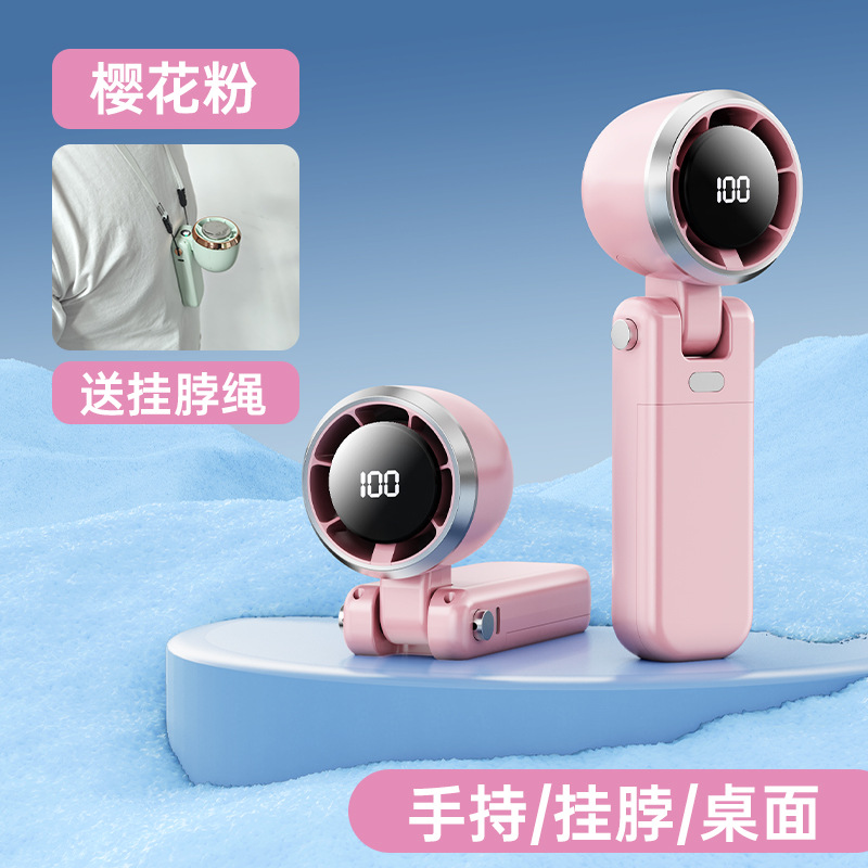 휴대용 접이식 목 매달린 작은 팬 100 단 USB 충전 디지털 디스플레이 야외 미니 휴대용 터보 냉각 작은 팬