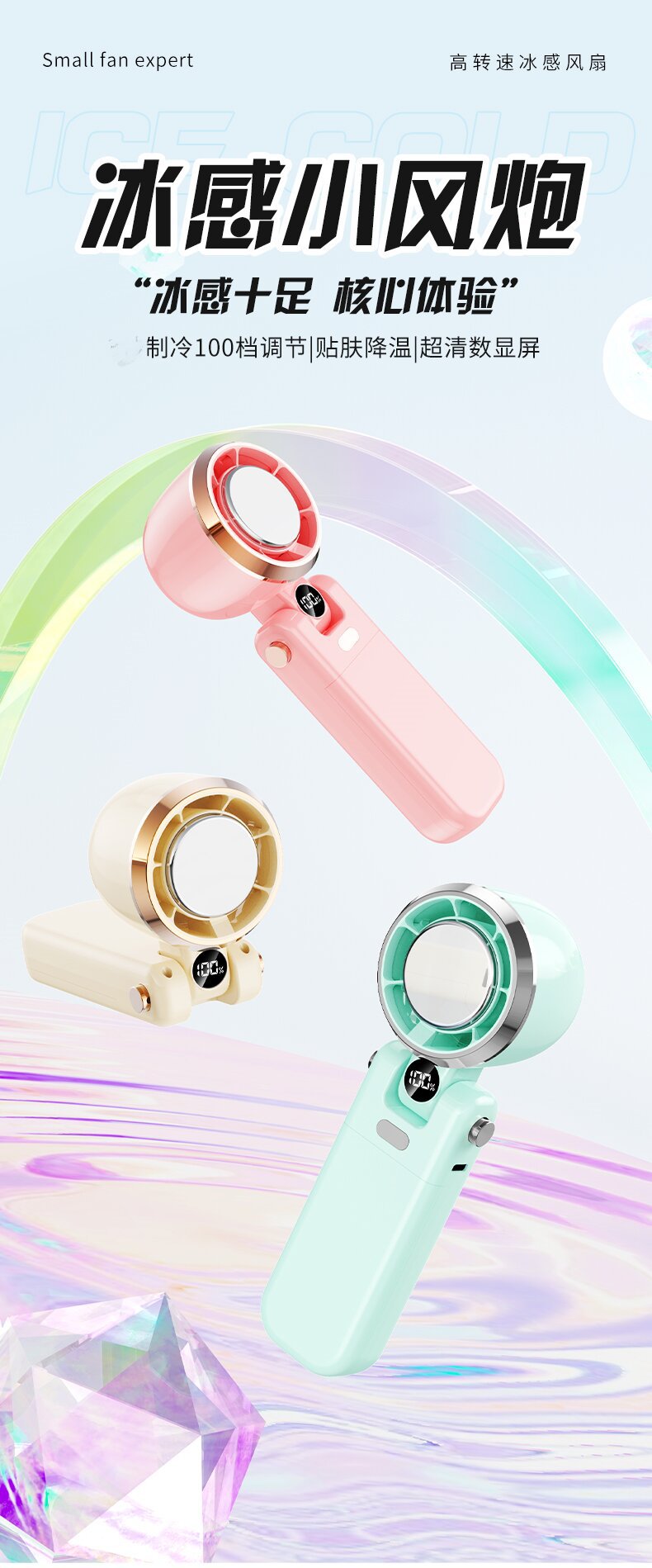 • 업그레이드 모델 [얼음자기냉장] 핑크 + 프리 랜야드 + 100단 풍력