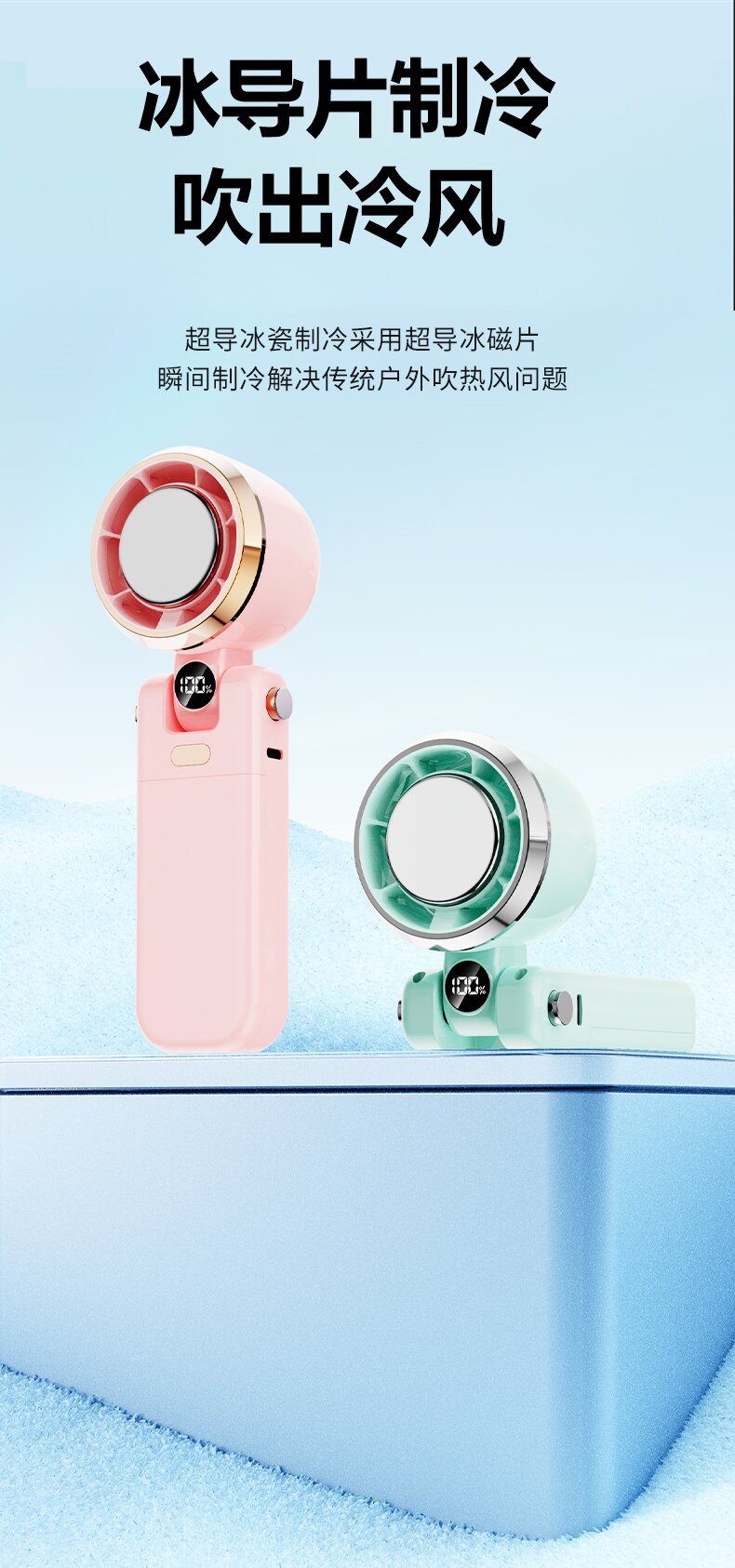 • 업그레이드 모델 [얼음자기냉장] 연두색 + 프리 랜야드 + 100단 풍력
