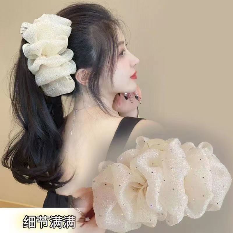 큰 공주 기질 상어 클립 머리 장식에 유성 샤워 구름 거품 잡아 클립 메쉬 핫 드릴링 활 머리핀
