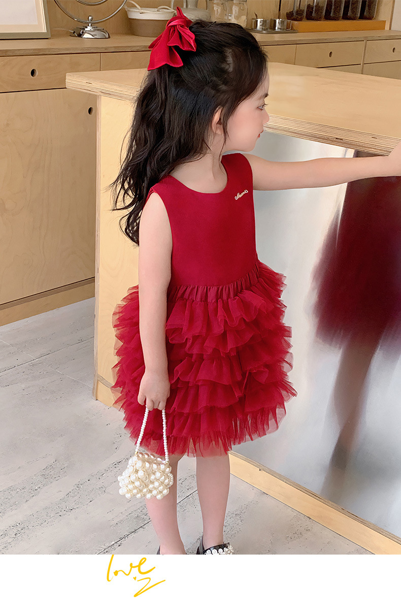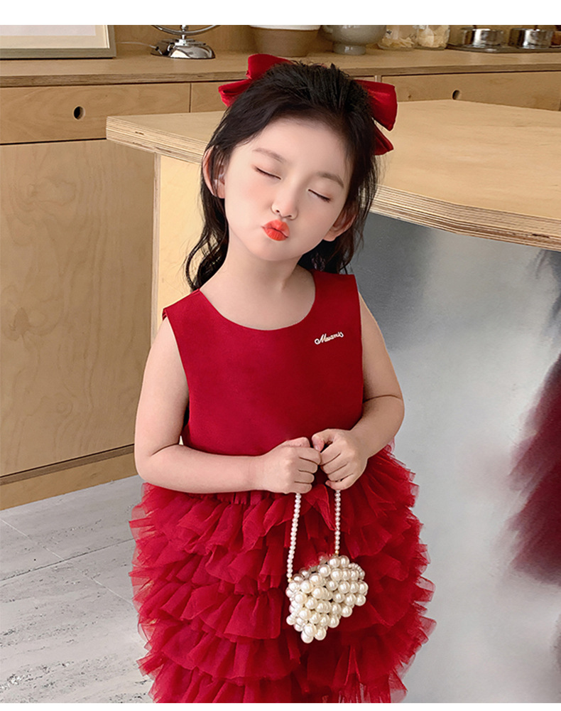 여자 공주 원피스 투투 스커트 어린이 달콤한 파우치 스커트 아기 소녀 공연 메쉬 조끼 케이크 스커트스토어 가기