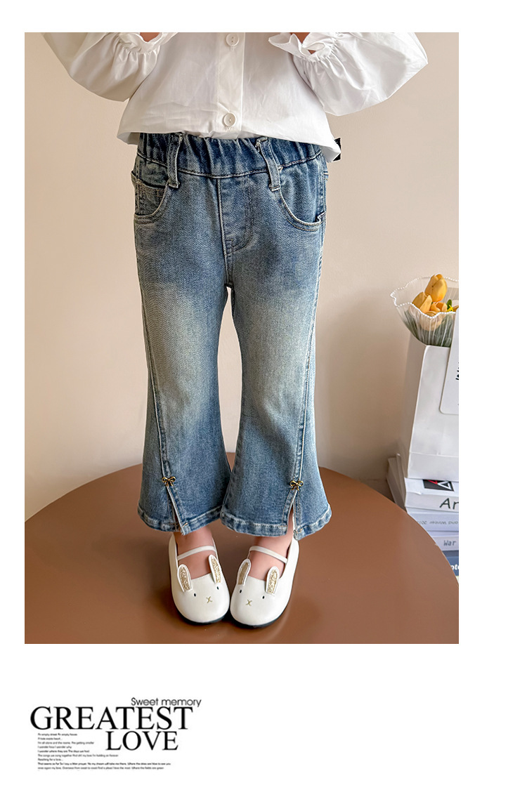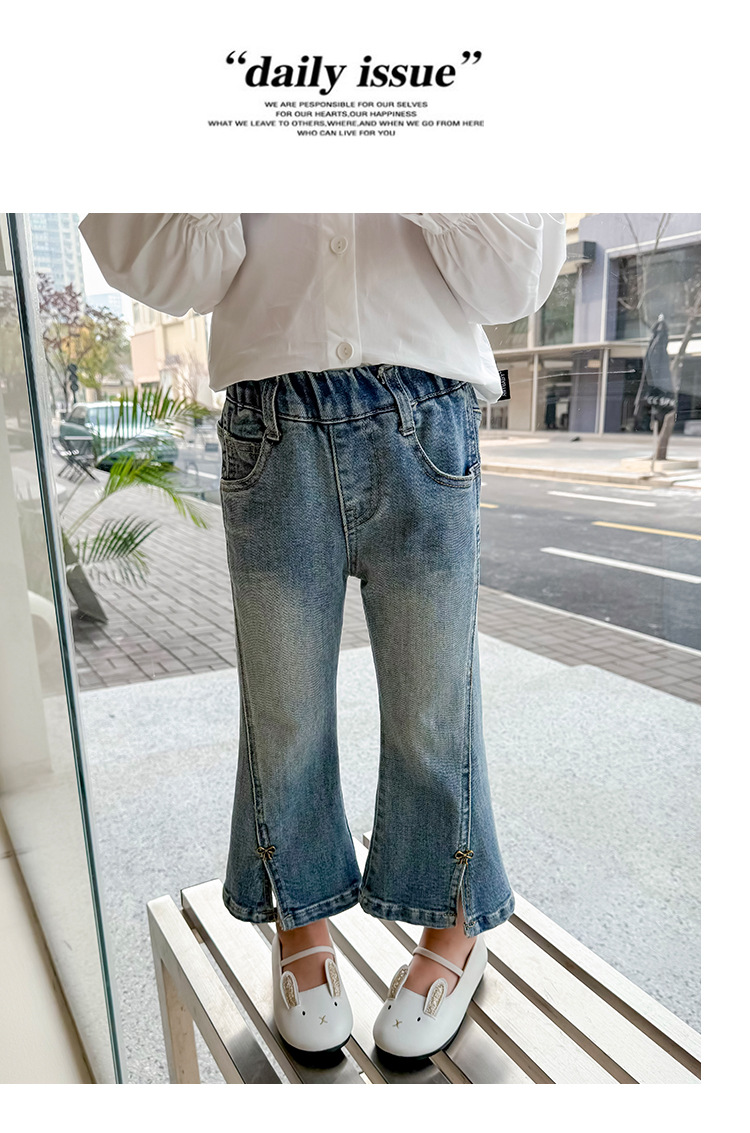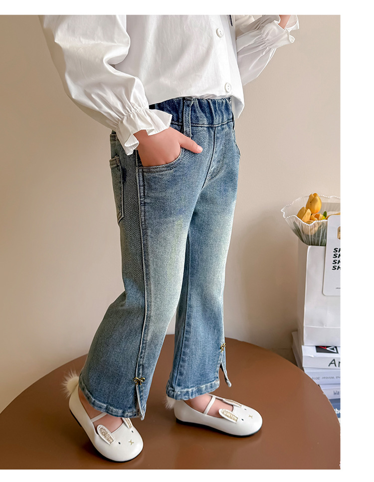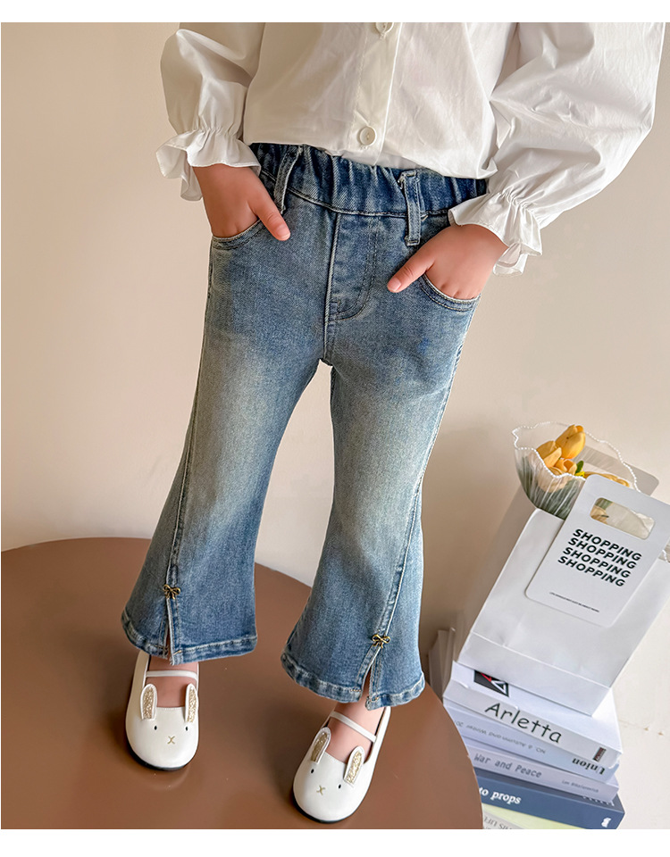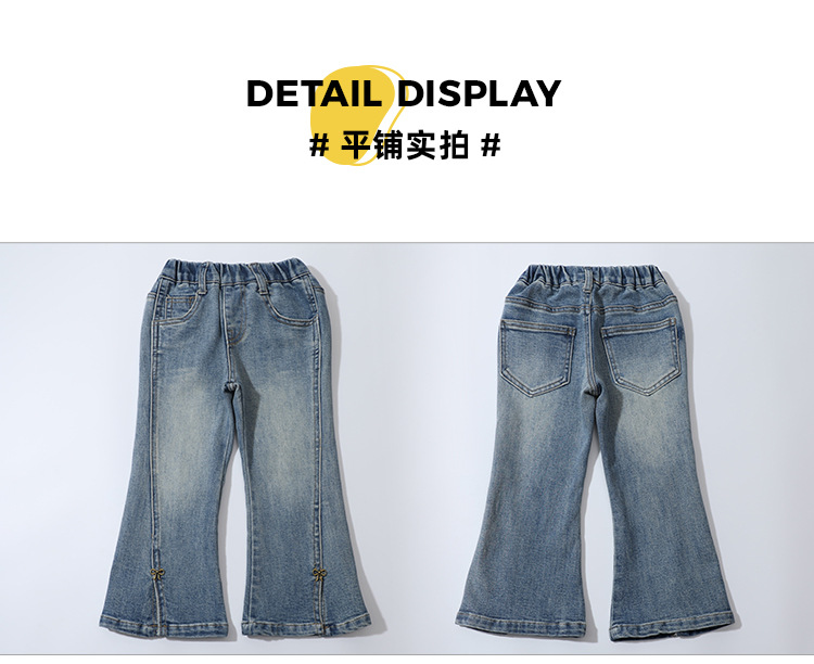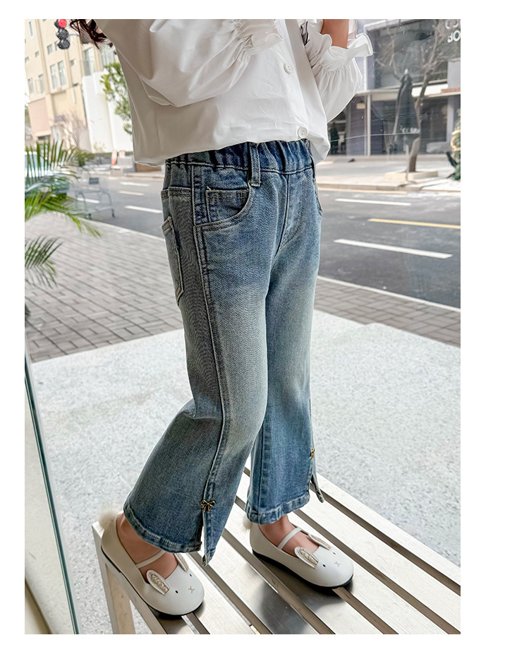 소녀 청바지 봄과 가을 2025 새로운 어린이 봄 중소형 어린이 마이크로 플레어 바지 봄 활 매듭 바지스토어 가기