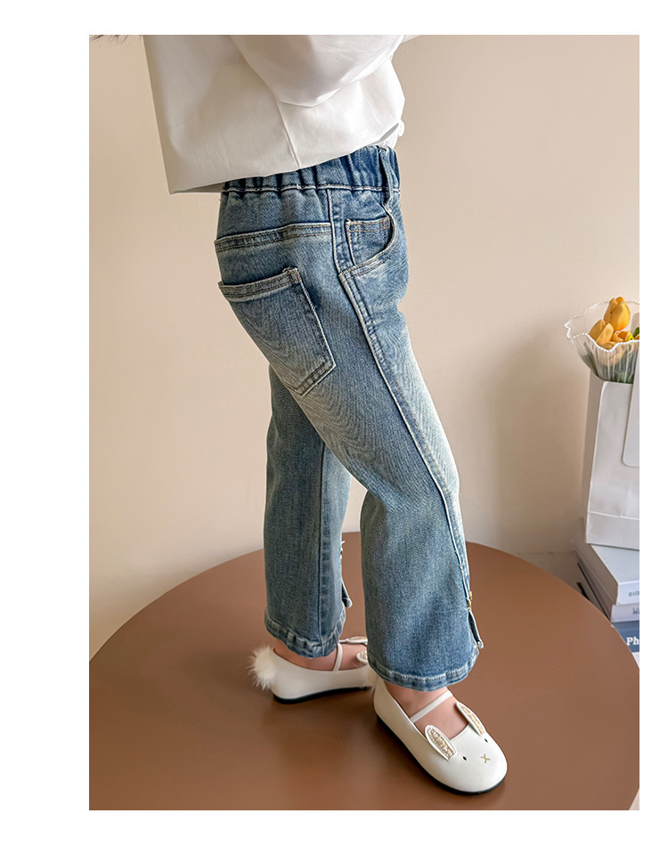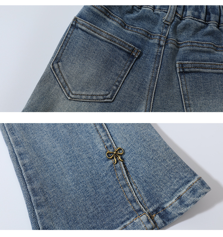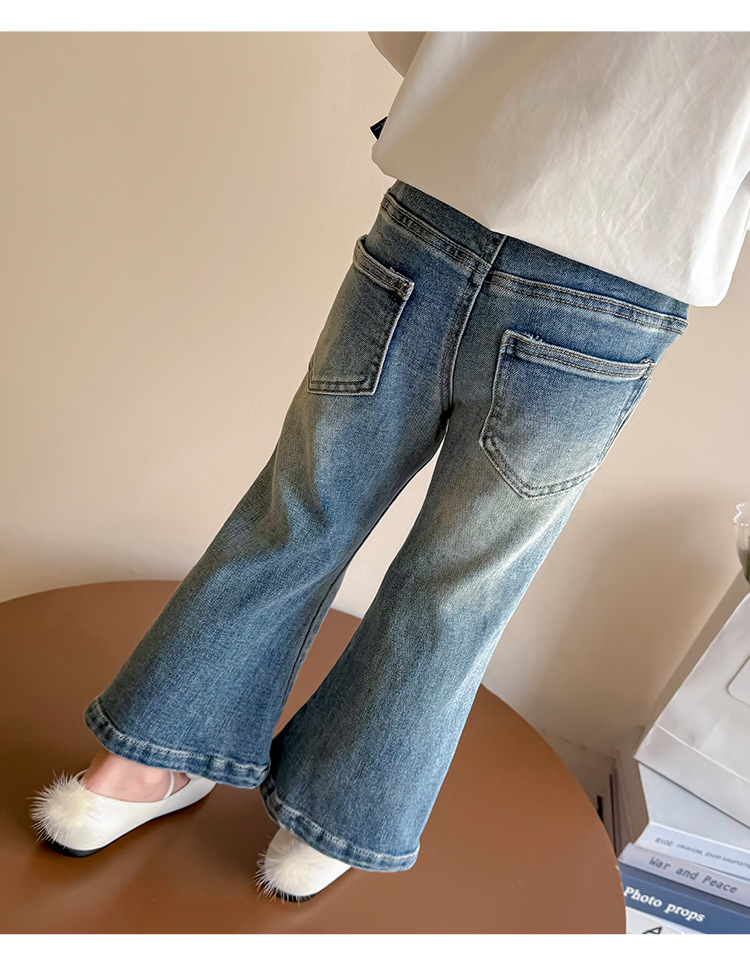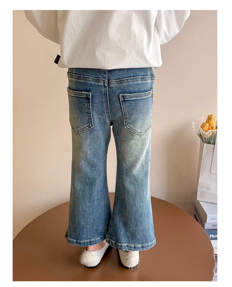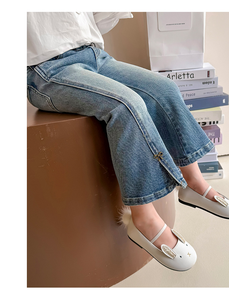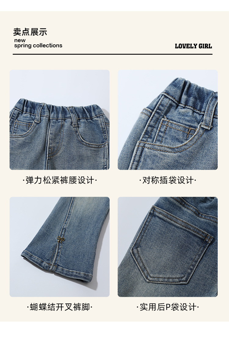 소녀 청바지 봄과 가을 2025 새로운 어린이 봄 중소형 어린이 마이크로 플레어 바지 봄 활 매듭 바지스토어 가기