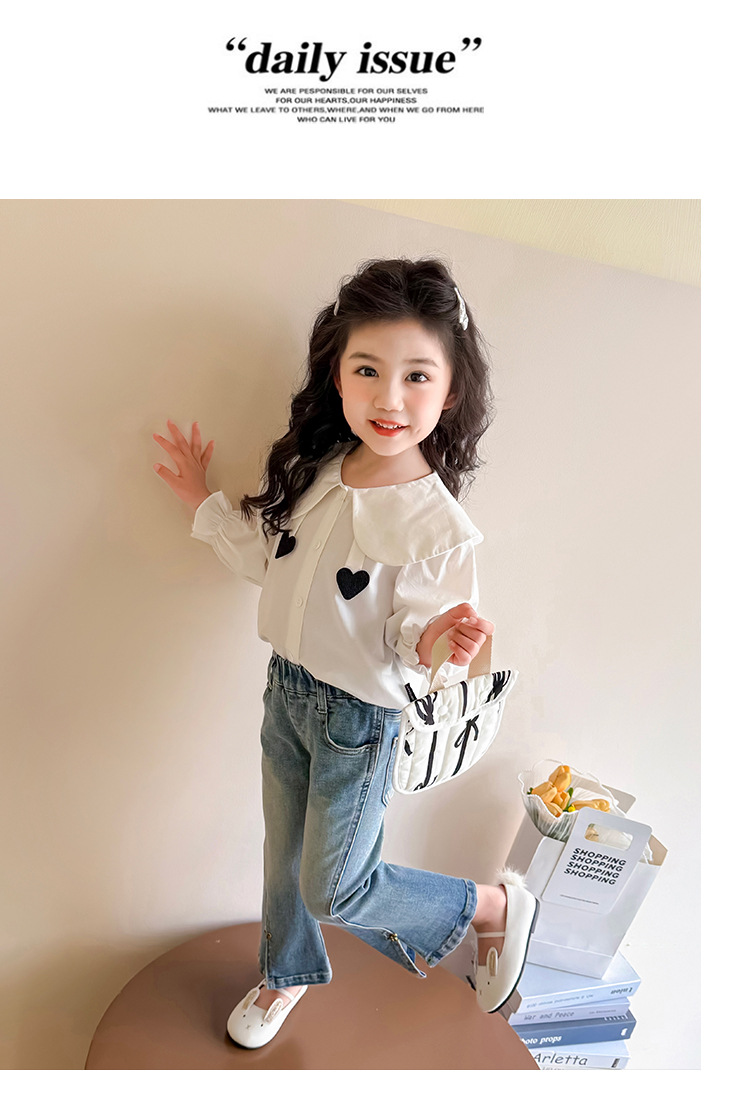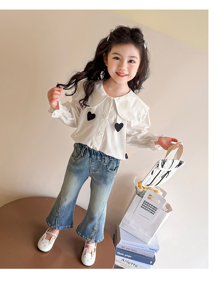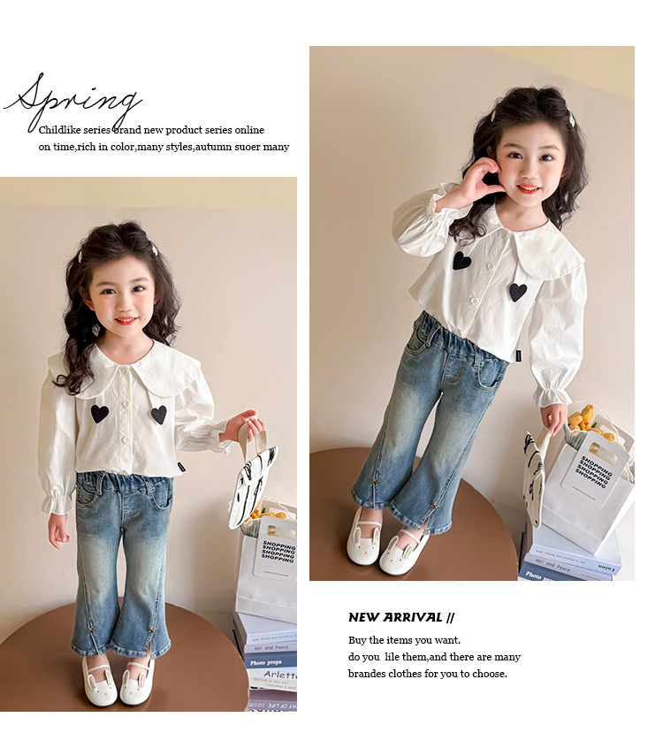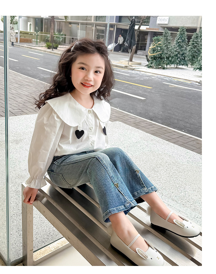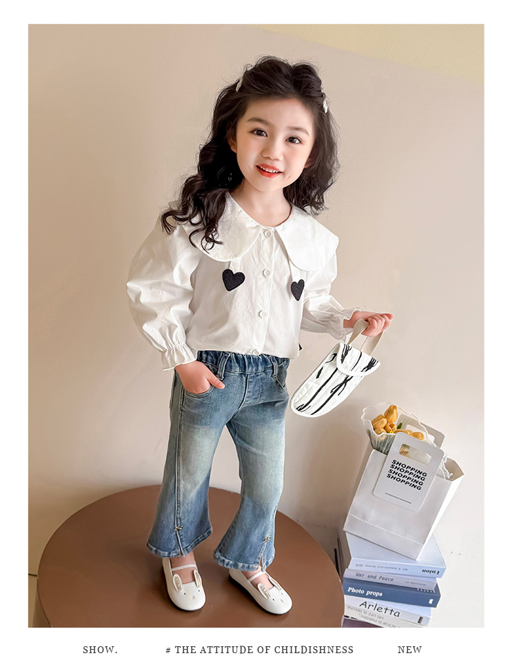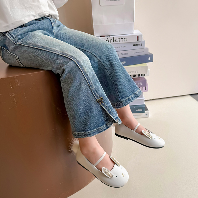 소녀 청바지 봄과 가을 2025 새로운 어린이 봄 중소형 어린이 마이크로 플레어 바지 봄 활 매듭 바지스토어 가기