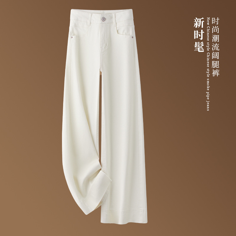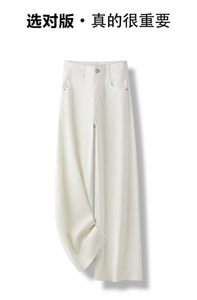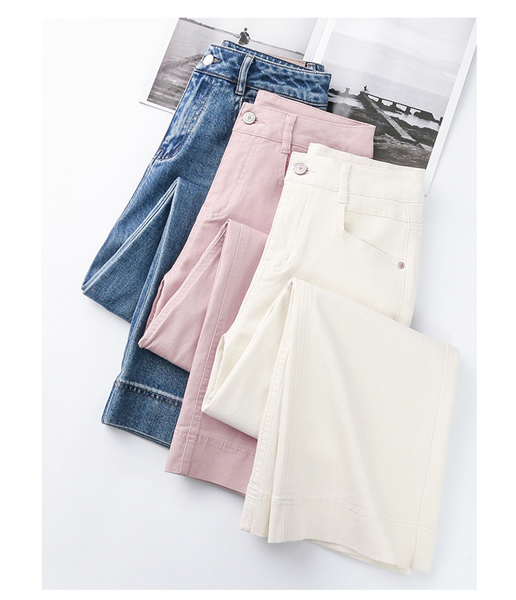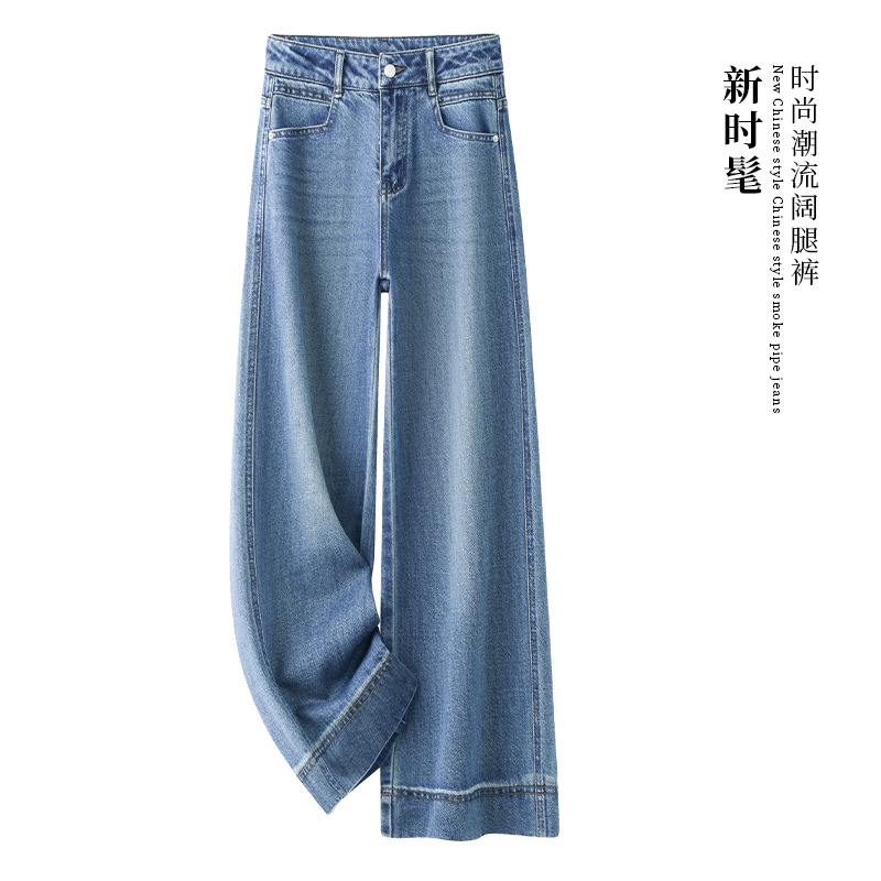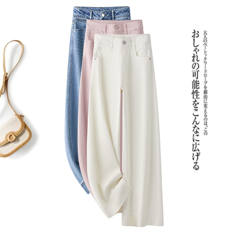 부드러운 데님 스트레이트 여성의 봄과 여름 새로운 유행 느슨한 작은 그림 슬리밍 펜던트 캐주얼 자른 좁은 넓은 다리 바지스토어 가기