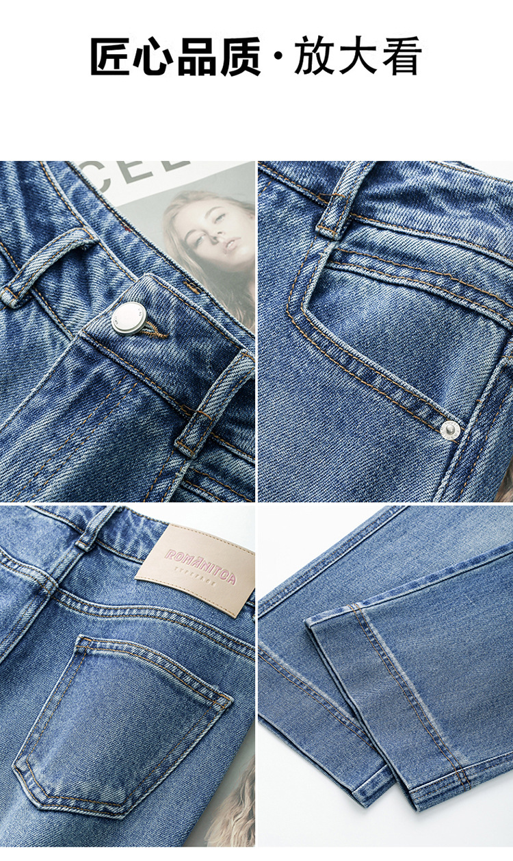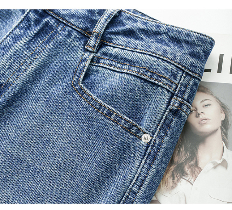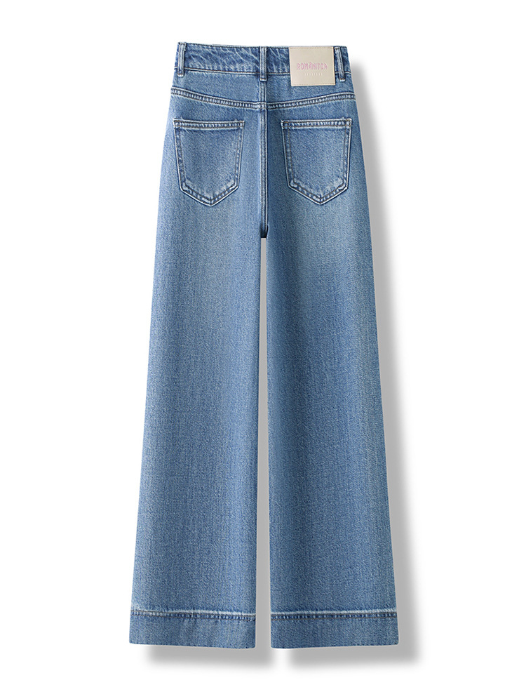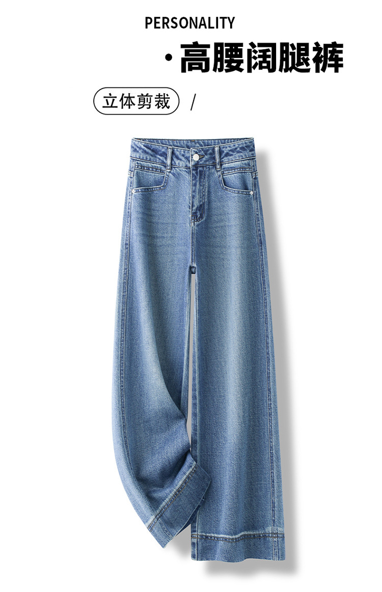 부드러운 데님 스트레이트 여성의 봄과 여름 새로운 유행 느슨한 작은 그림 슬리밍 펜던트 캐주얼 자른 좁은 넓은 다리 바지스토어 가기
