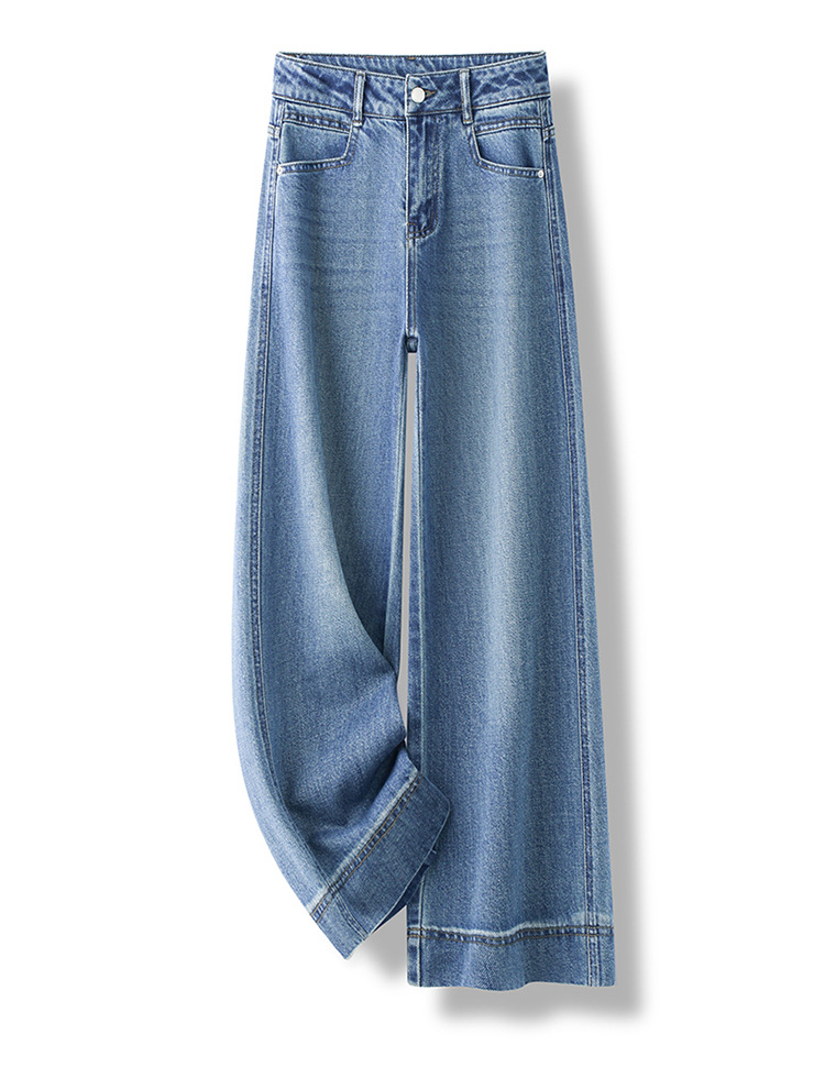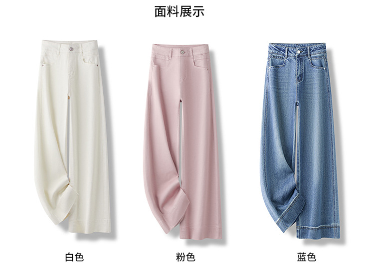 부드러운 데님 스트레이트 여성의 봄과 여름 새로운 유행 느슨한 작은 그림 슬리밍 펜던트 캐주얼 자른 좁은 넓은 다리 바지