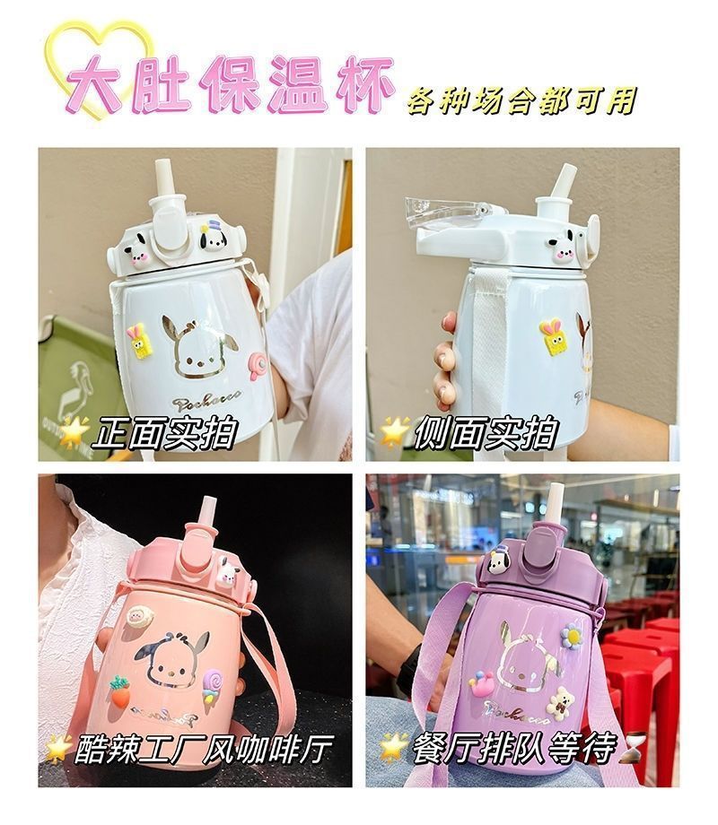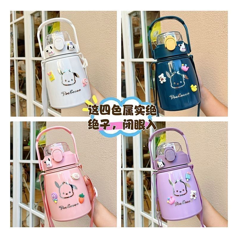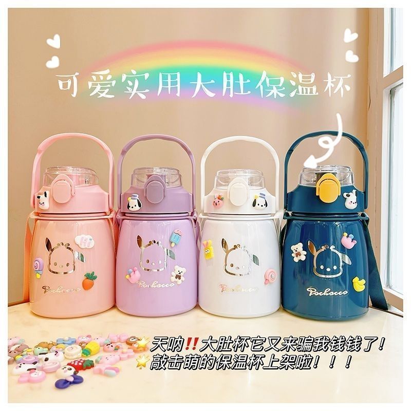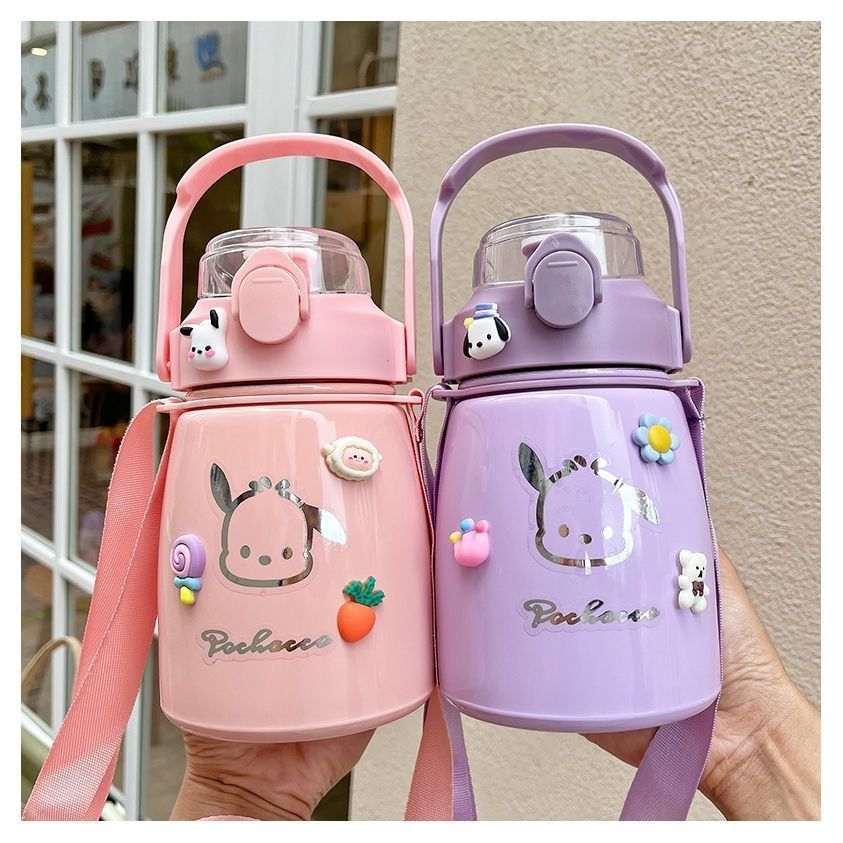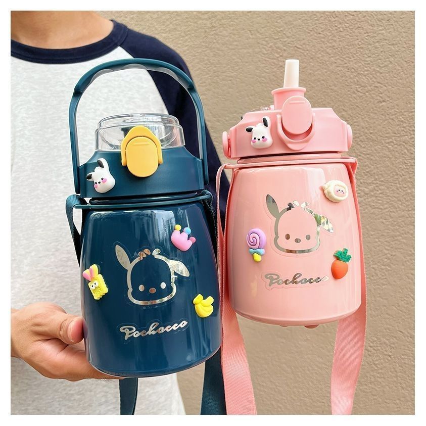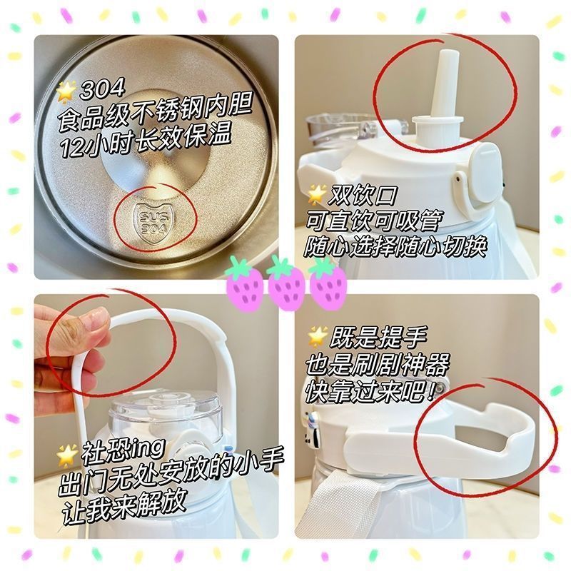 사이버 축하 큰 배 보온병 높은 색상 값 대형 용량 컵 밀짚 학생 귀여운 휴대용 스트랩 워터 컵 남녀스토어 가기