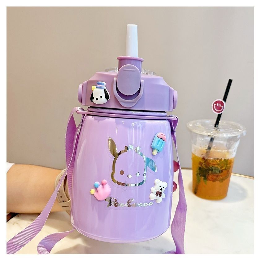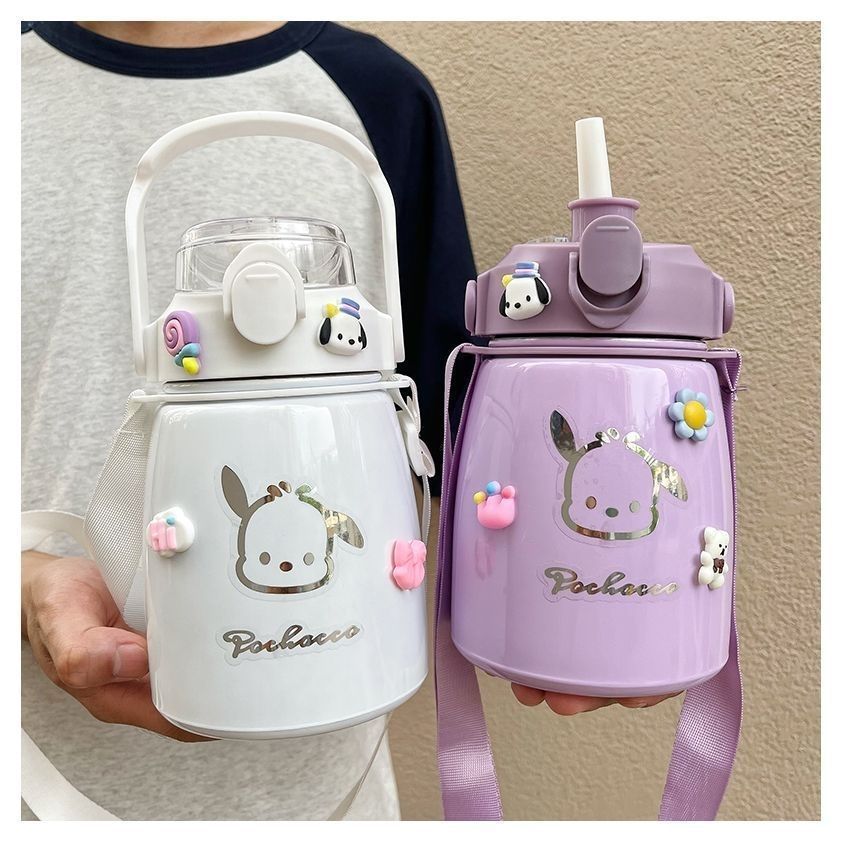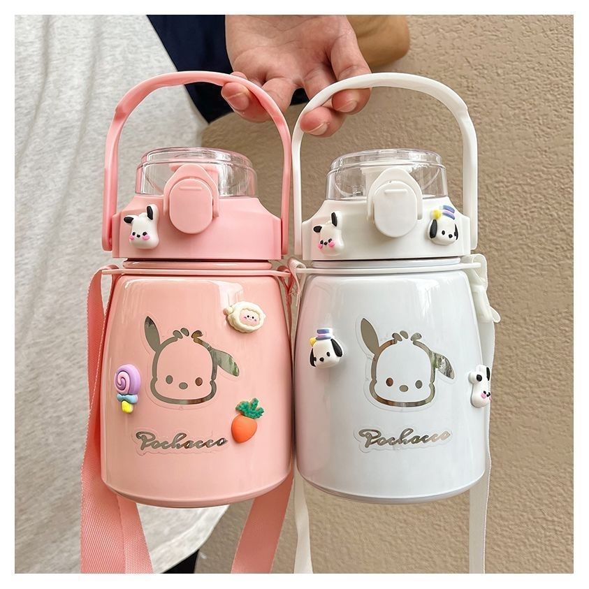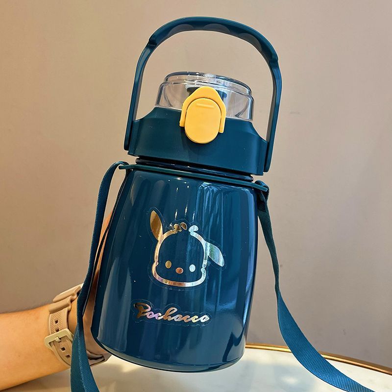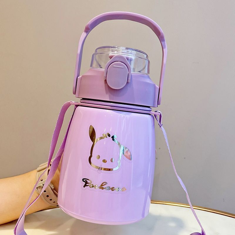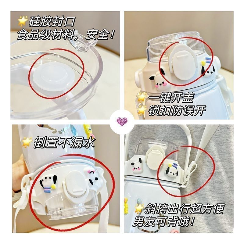 사이버 축하 큰 배 보온병 높은 색상 값 대형 용량 컵 밀짚 학생 귀여운 휴대용 스트랩 워터 컵 남녀스토어 가기