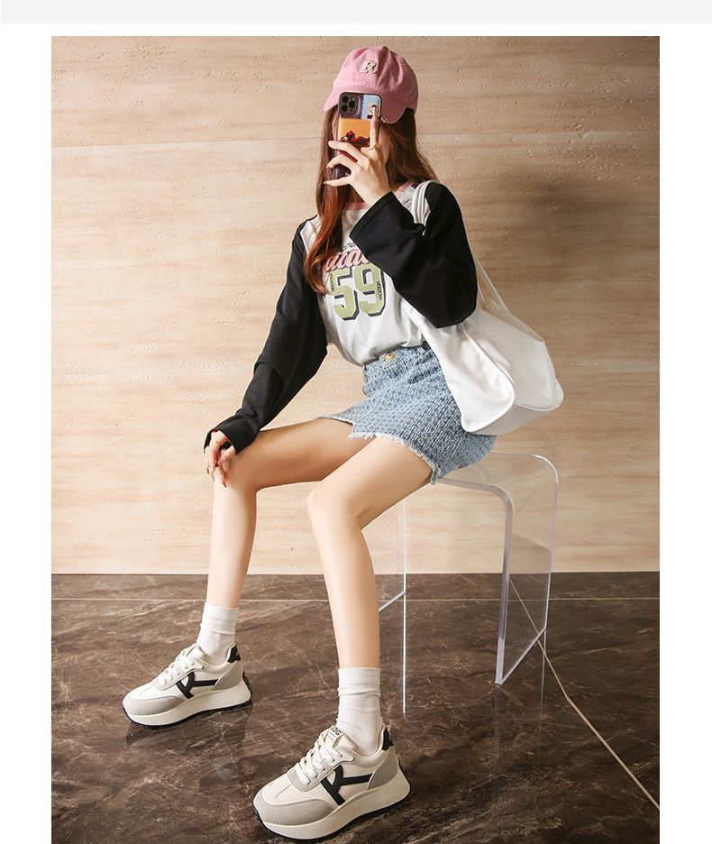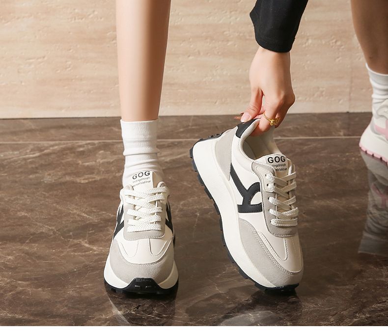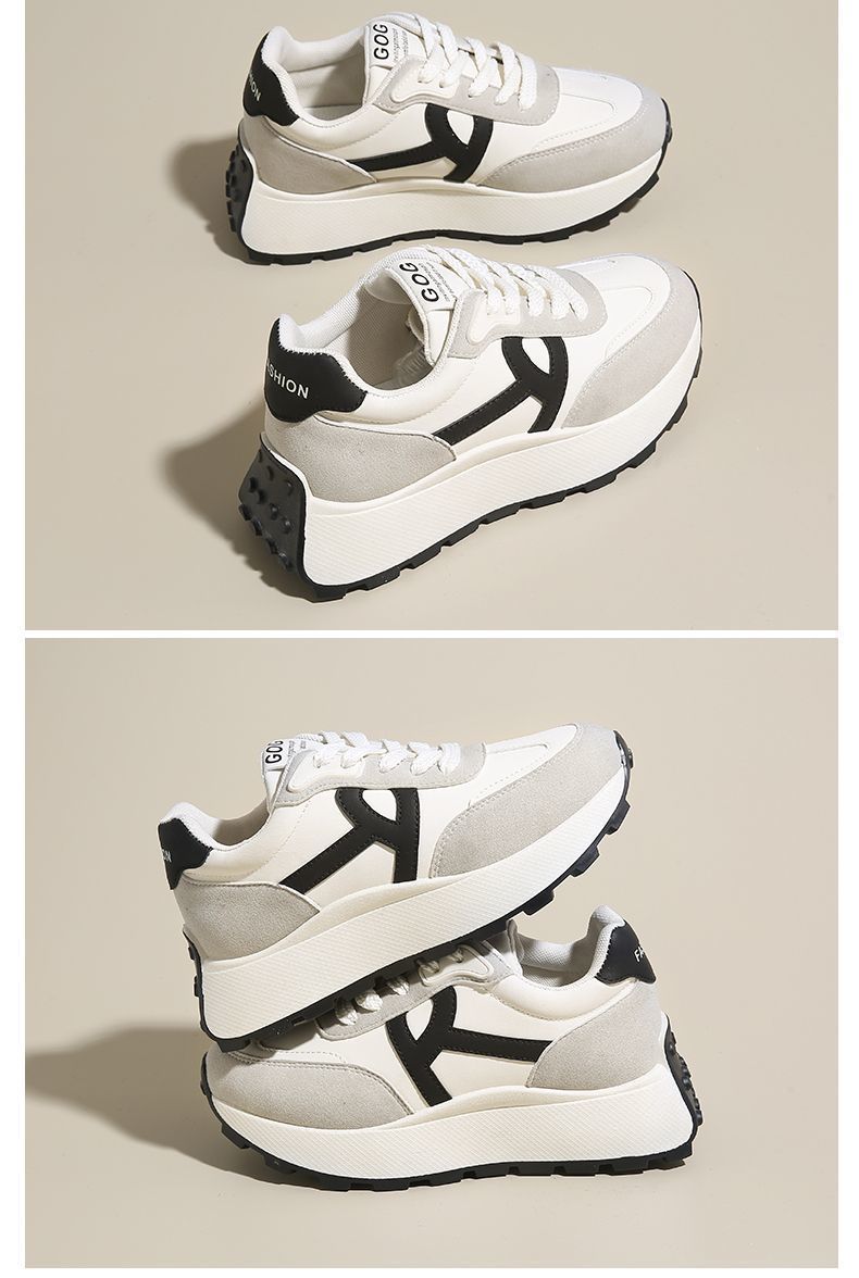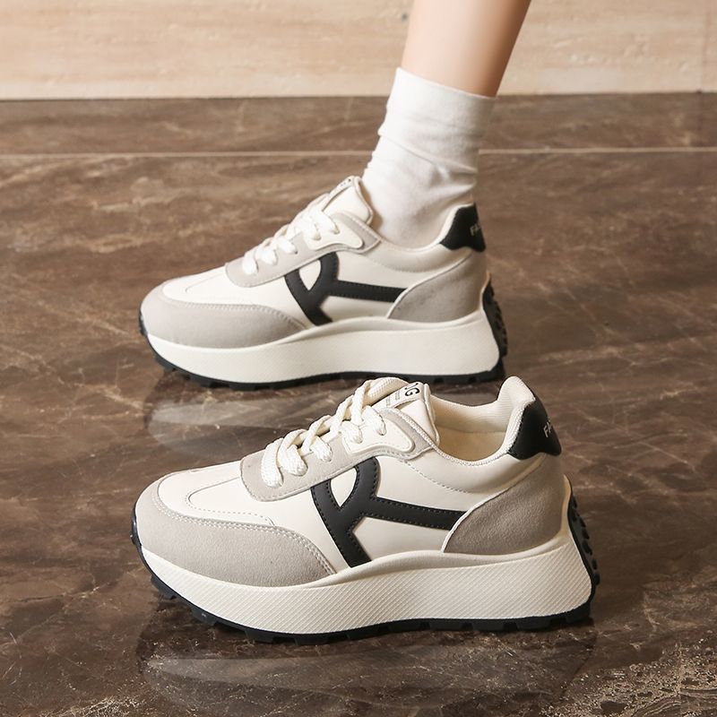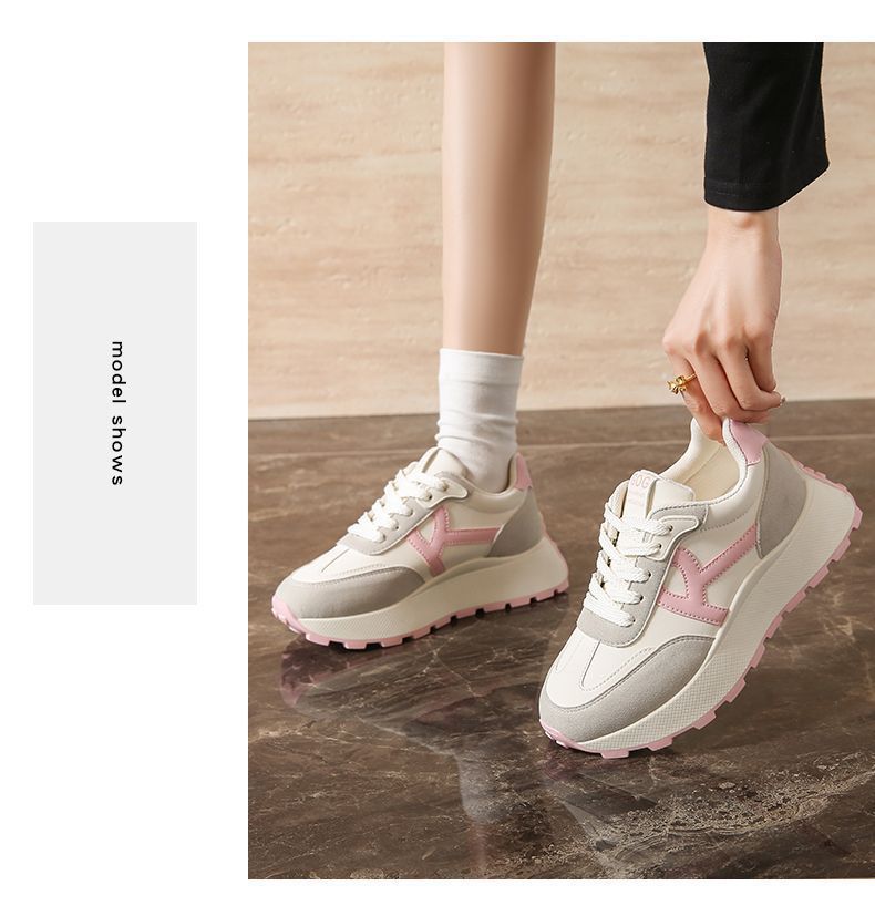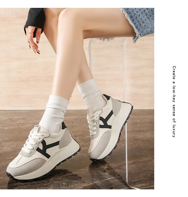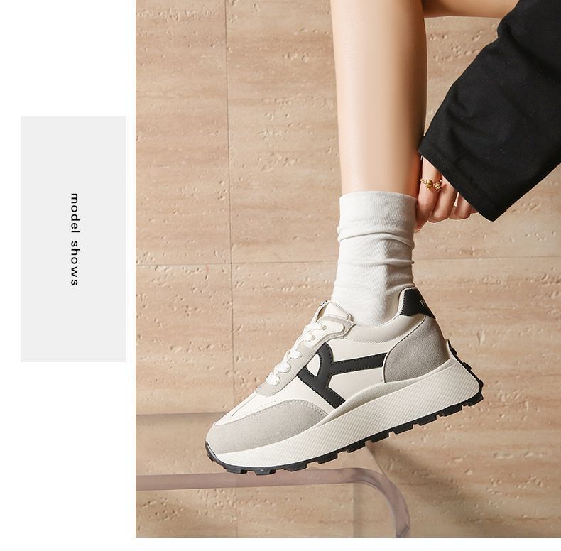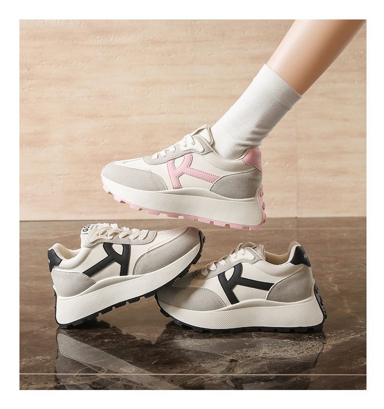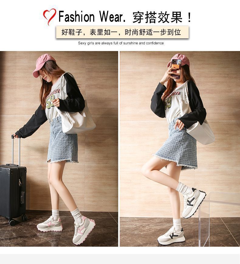 2025 새로운 한국식 패션 신발 여성 두꺼운 단독 올매치 라운드 발가락 캐주얼 토레 귀여운 운동화 도파민 경량스토어 가기
