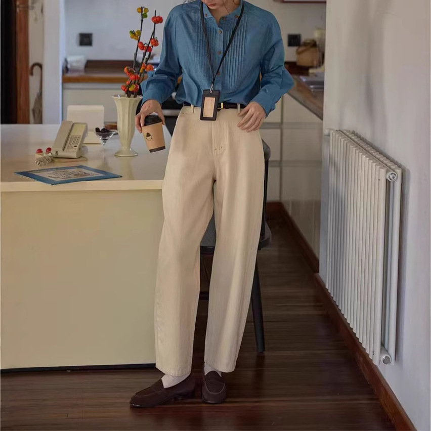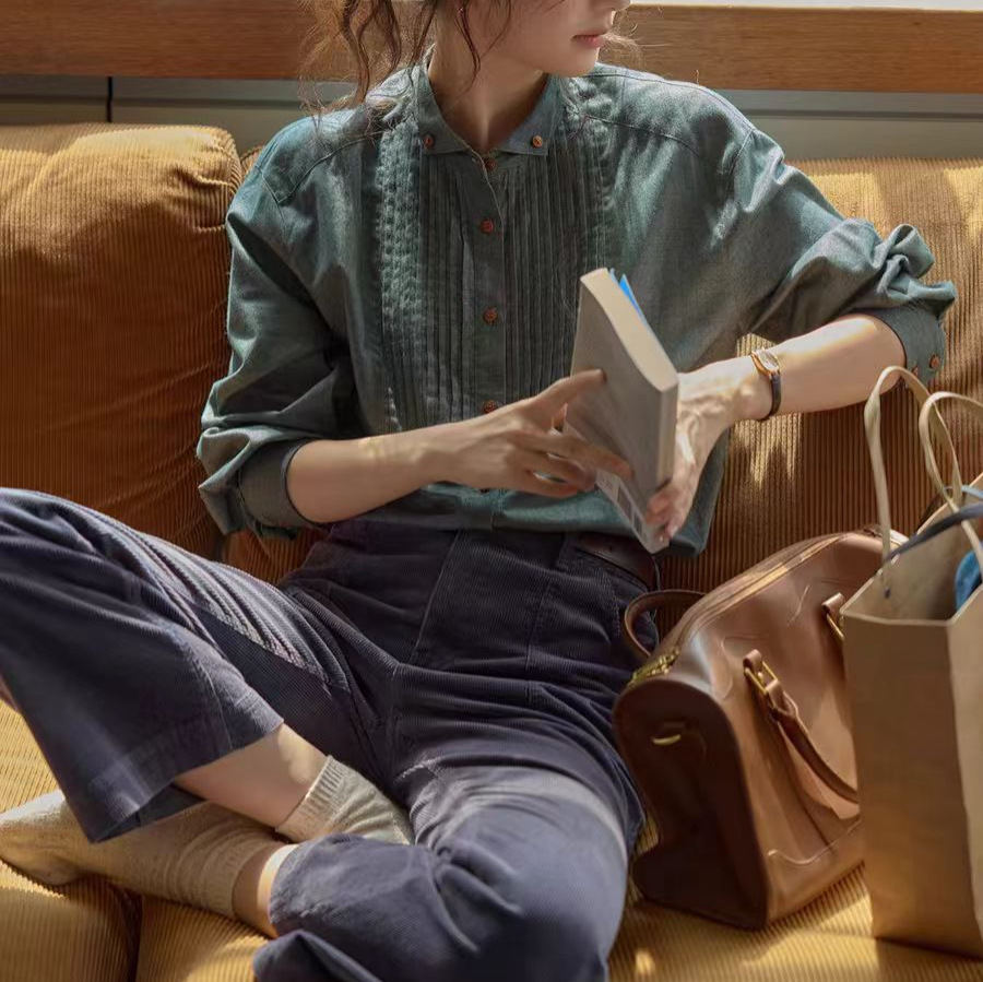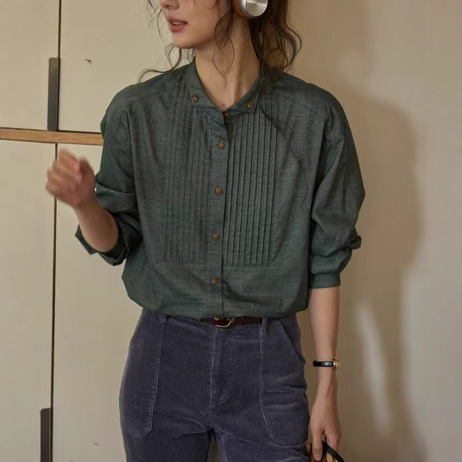 solighte 프렌치 레트로 윙 칼라 스트라이프 긴팔 셔츠 여성용 2026년 가을 신상 슬림핏 셔츠스토어 가기