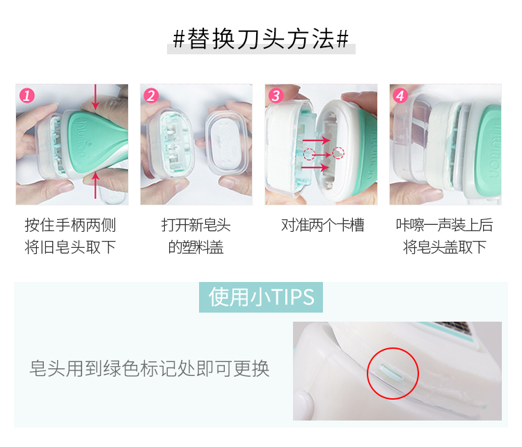 • 【녹색】민감한 피부❤ [나이프 홀더 + 커터 헤드 2개]
