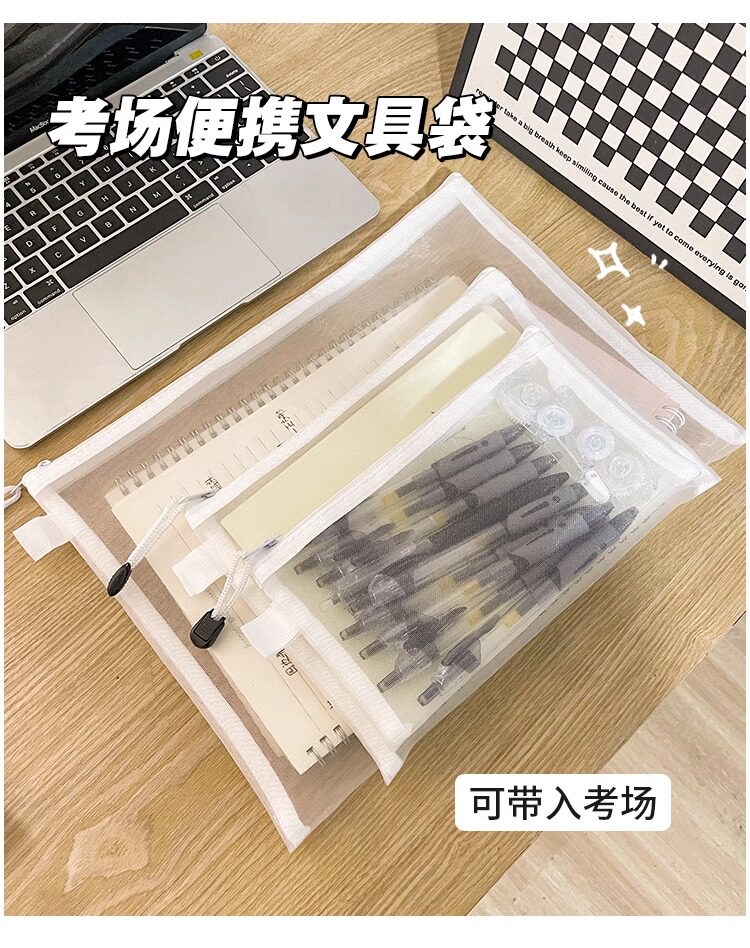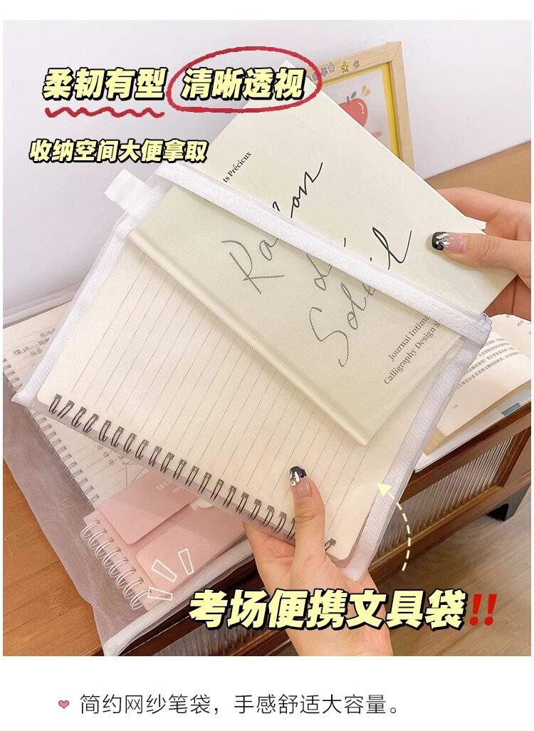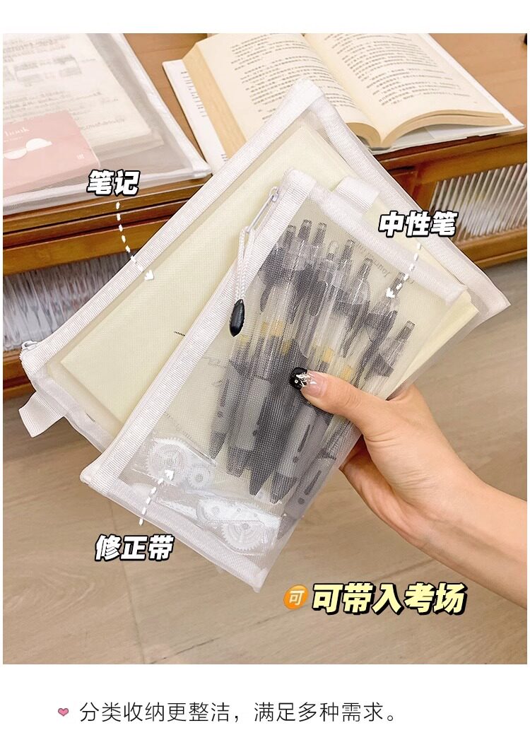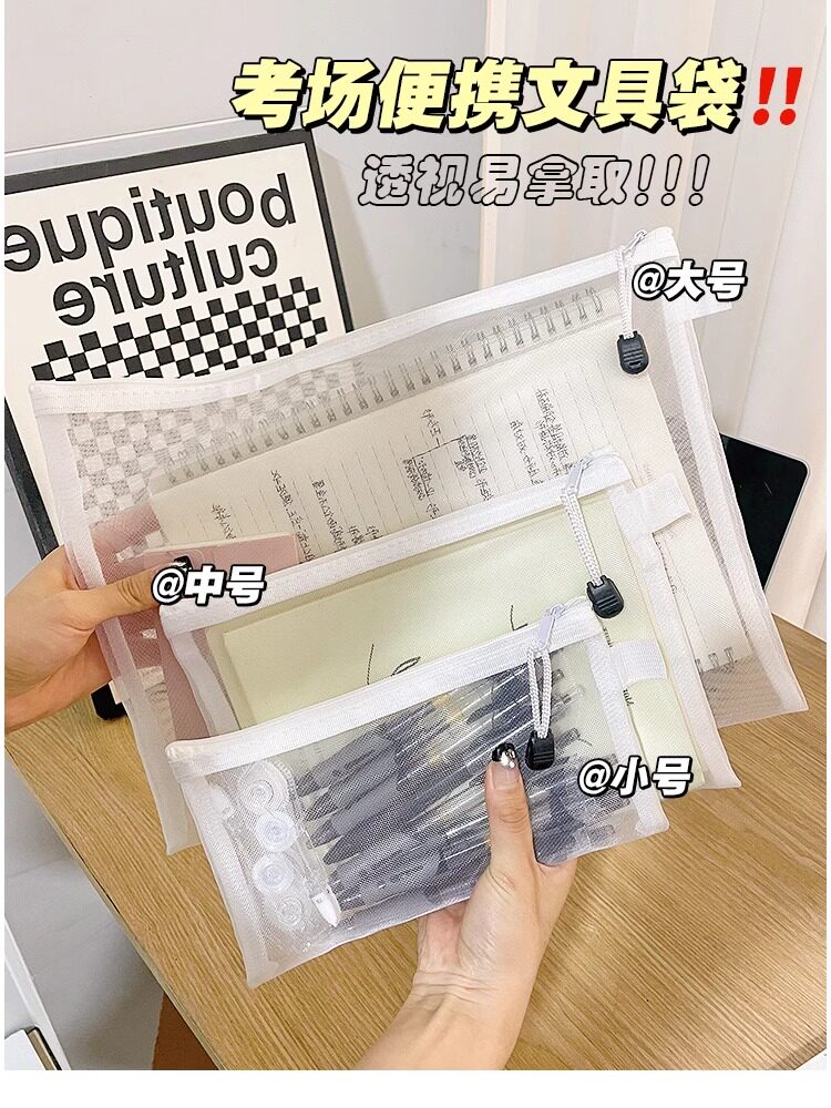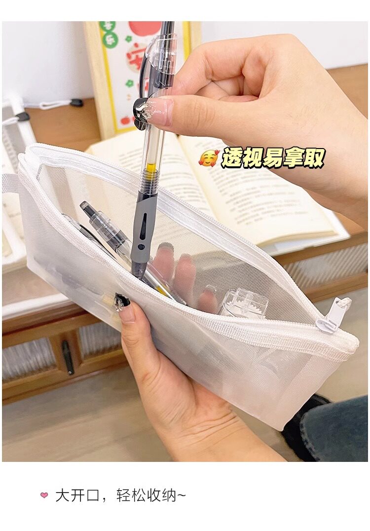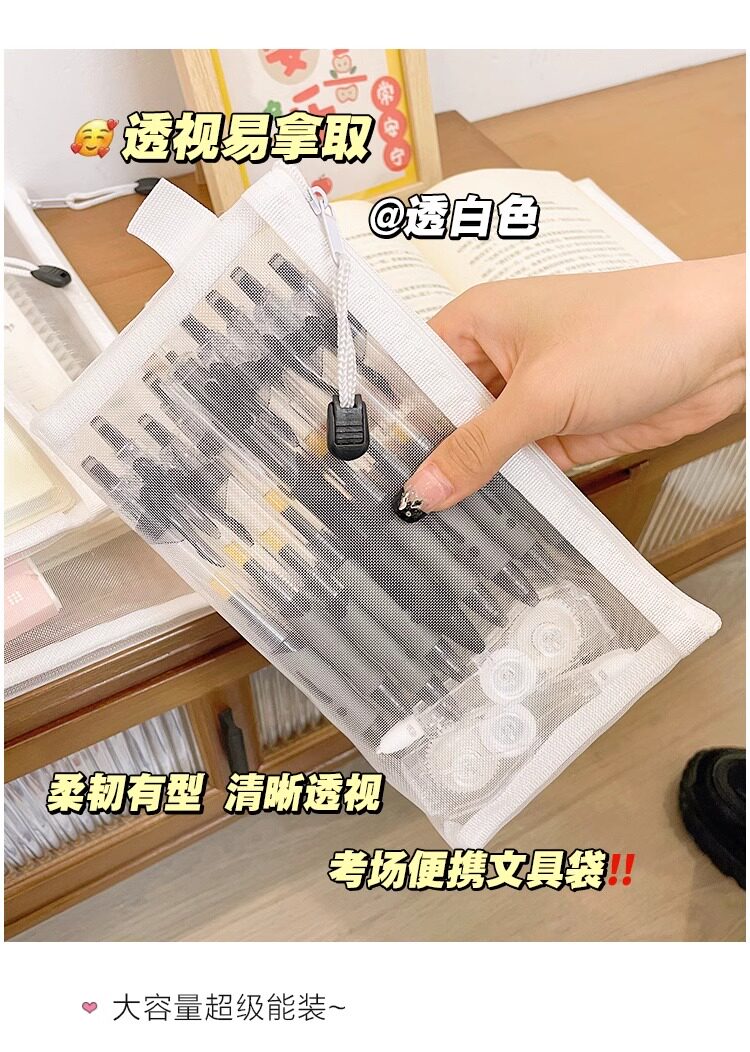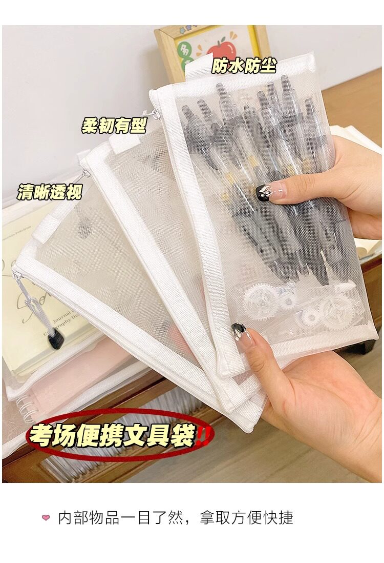 학생 시험을위한 간단한 투명 메쉬 연필 가방 보관 가방 휴대용 연필 가방 대용량 연필 가방 문구 가방스토어 가기