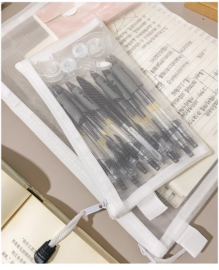 학생 시험을위한 간단한 투명 메쉬 연필 가방 보관 가방 휴대용 연필 가방 대용량 연필 가방 문구 가방