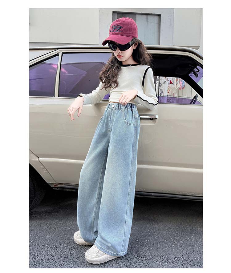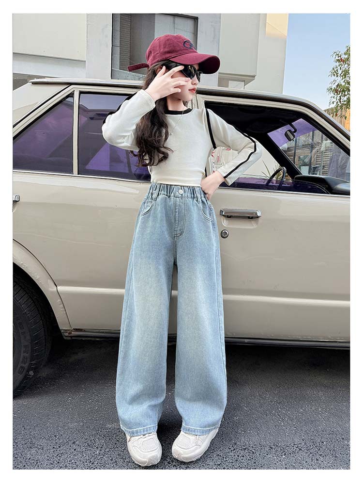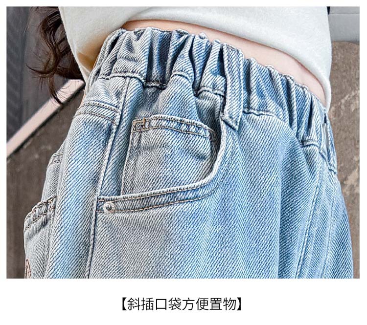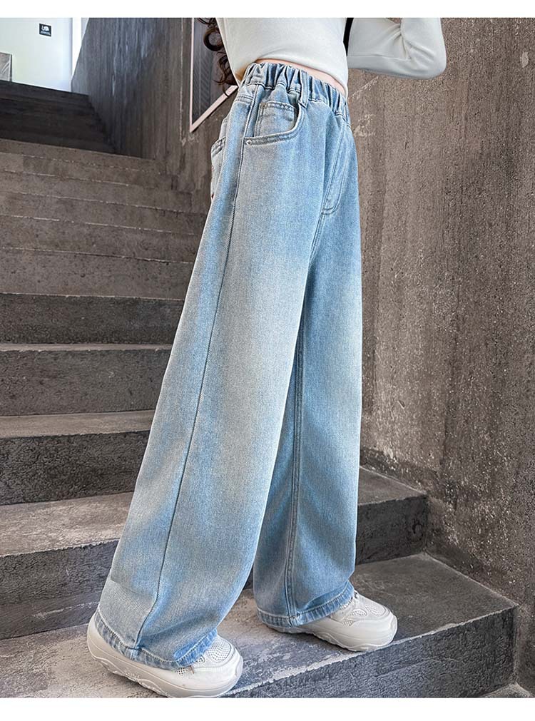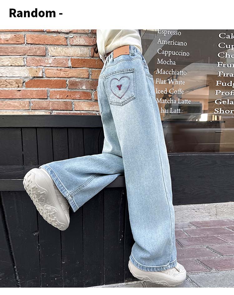 대외 무역 어린이 바지 소녀 백 가방 수 놓은 넓은 다리 바지 한국 버전 대형 어린이 느슨한 캐주얼 청바지 긴 대외 무역 도매스토어 가기