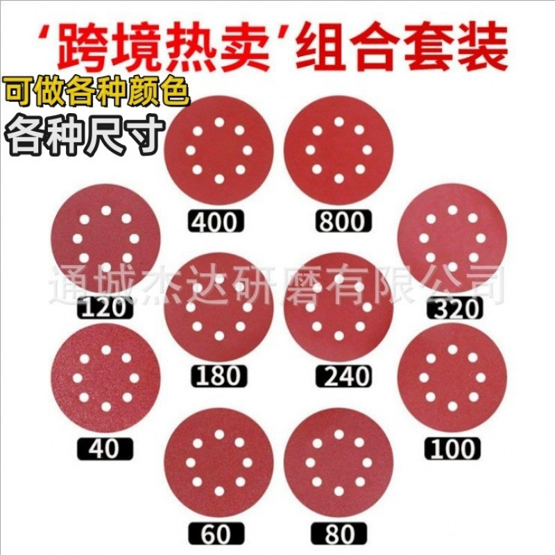 125mm5 인치 8 홀 레드 사포 조합 세트 6 인치 6 홀 디스크 사포 공기 연삭 모포 사포 백 브러시 시트
