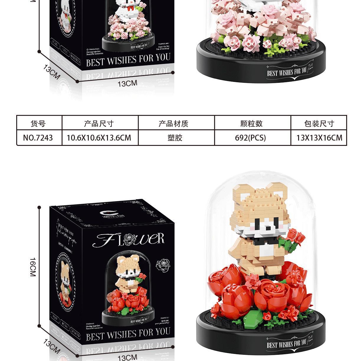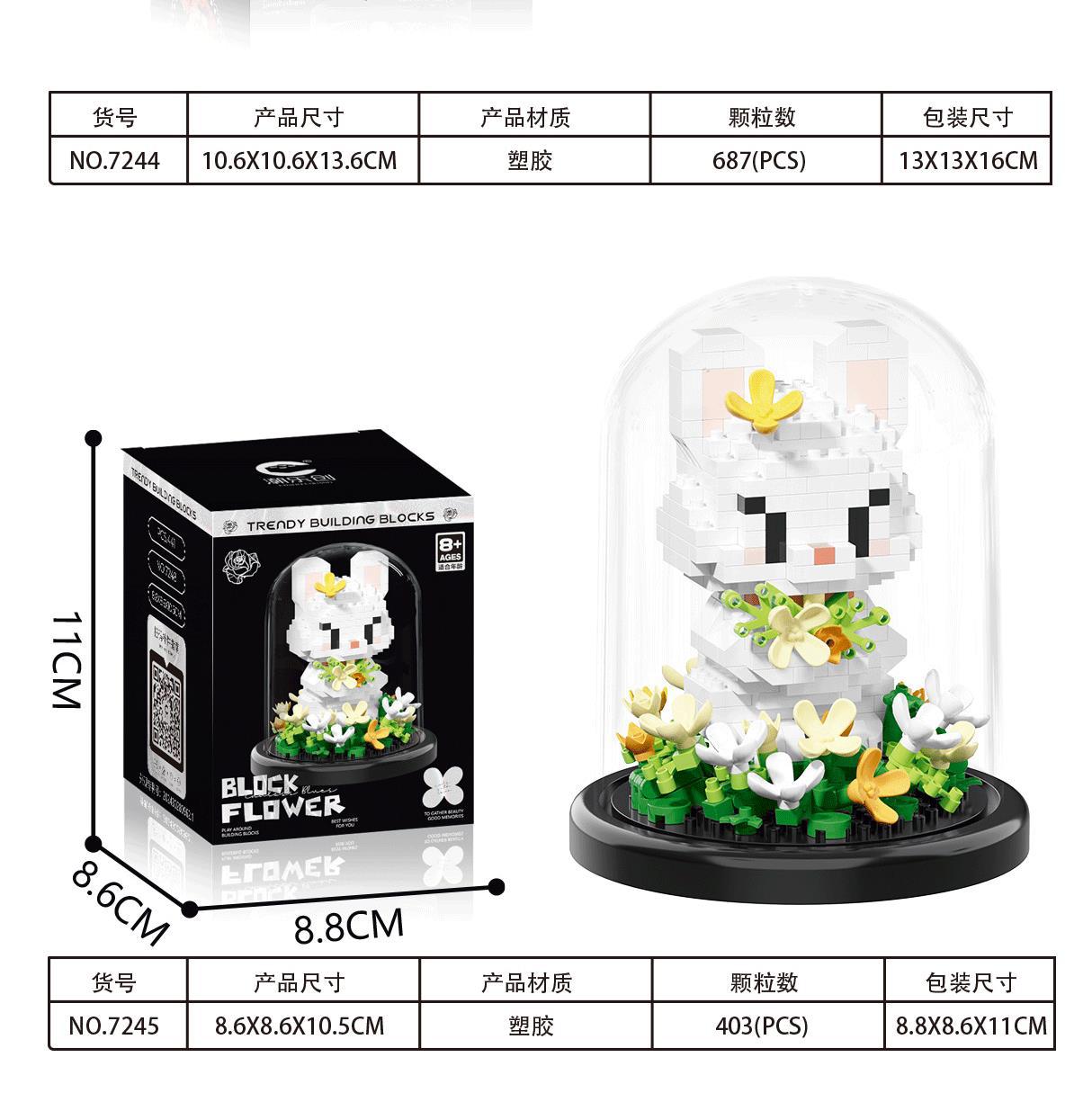 [도매 세대] 레고 벽돌 영원 꽃 장식품 선물과 호환되는 사랑스러운 정원 장미 토끼 조립