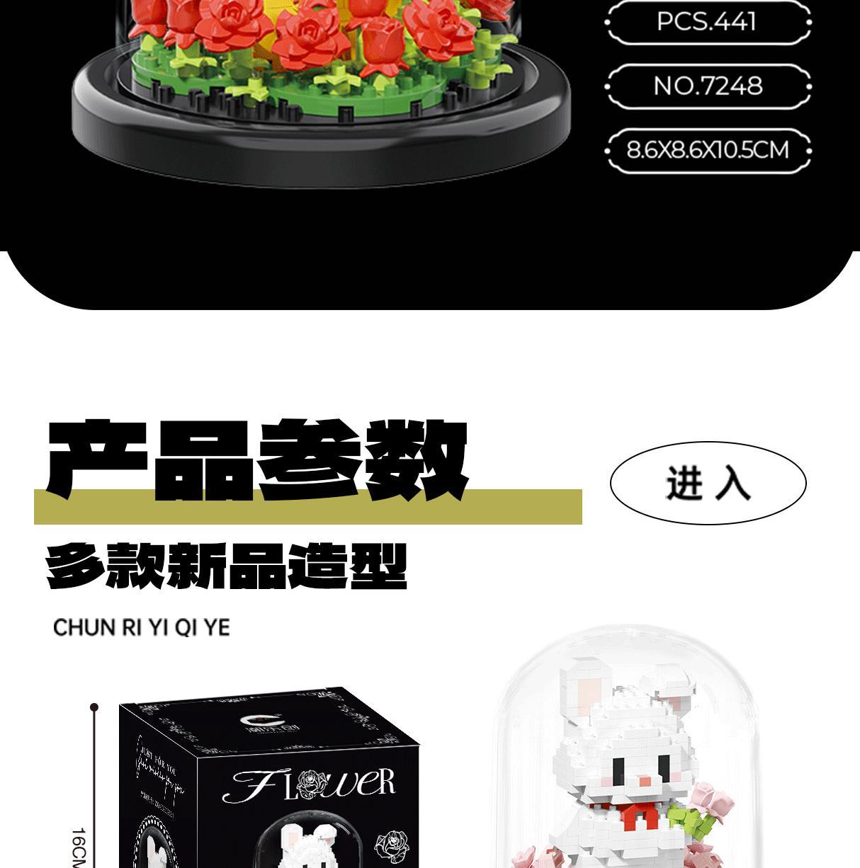 [도매 세대] 레고 벽돌 영원 꽃 장식품 선물과 호환되는 사랑스러운 정원 장미 토끼 조립스토어 가기
