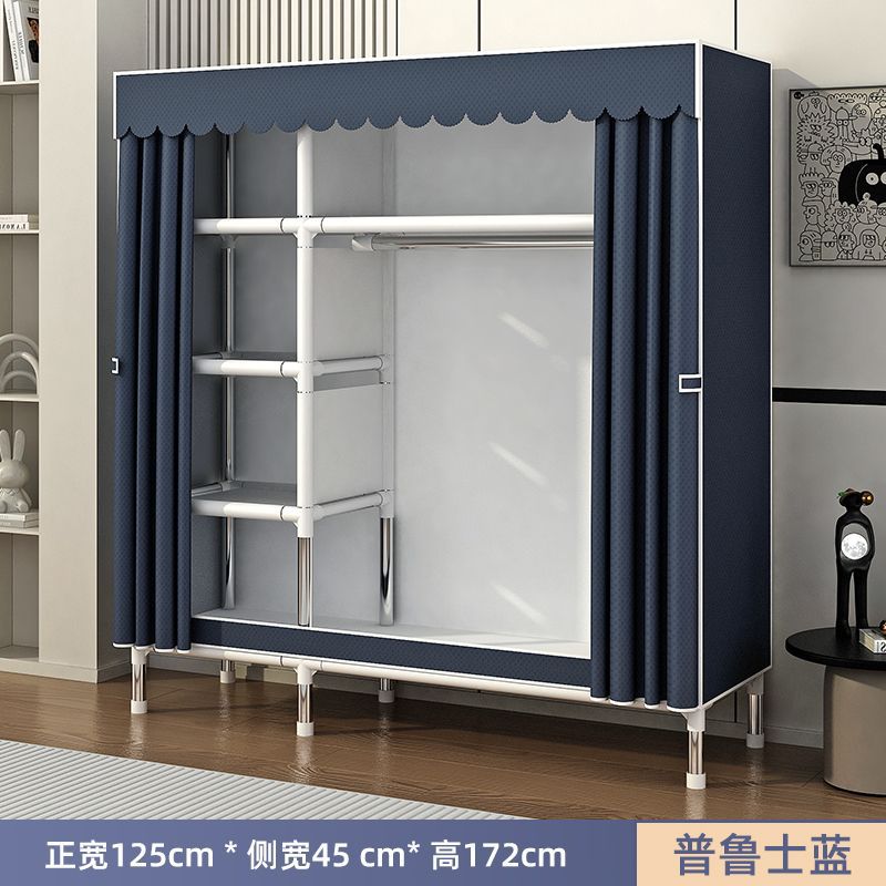 간단한 옷장 집 침실 전체 강철 프레임 조립 임대 방 견고하고 튼튼한 내각을 위한 두꺼운 강철 관 옷감스토어 가기