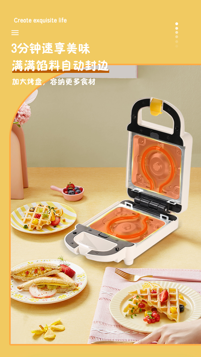 샌드위치 아침 식사 기계 가정용 작은 토스트 빵 기계 샌드위치 와플 타이밍 다기능