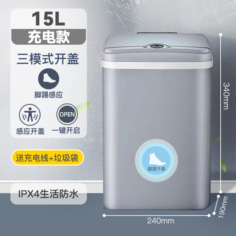 • 15리터 실버그레이 충전식 모델 [스마트센서+킥+버튼]