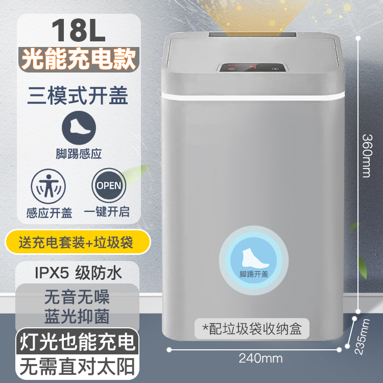 • ✅18리터 갤럭시 그레이 - 광에너지 및 전기에너지 듀얼 충전 [스마트 센서 + 킥 + 버튼 + 블루라이트]