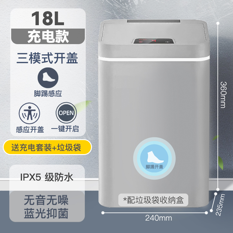 • 16리터 라이트 럭셔리 그레이 충전식 모델 [스마트 센서 + 킥 + 버튼 + 블루라이트] 도르래 포함
