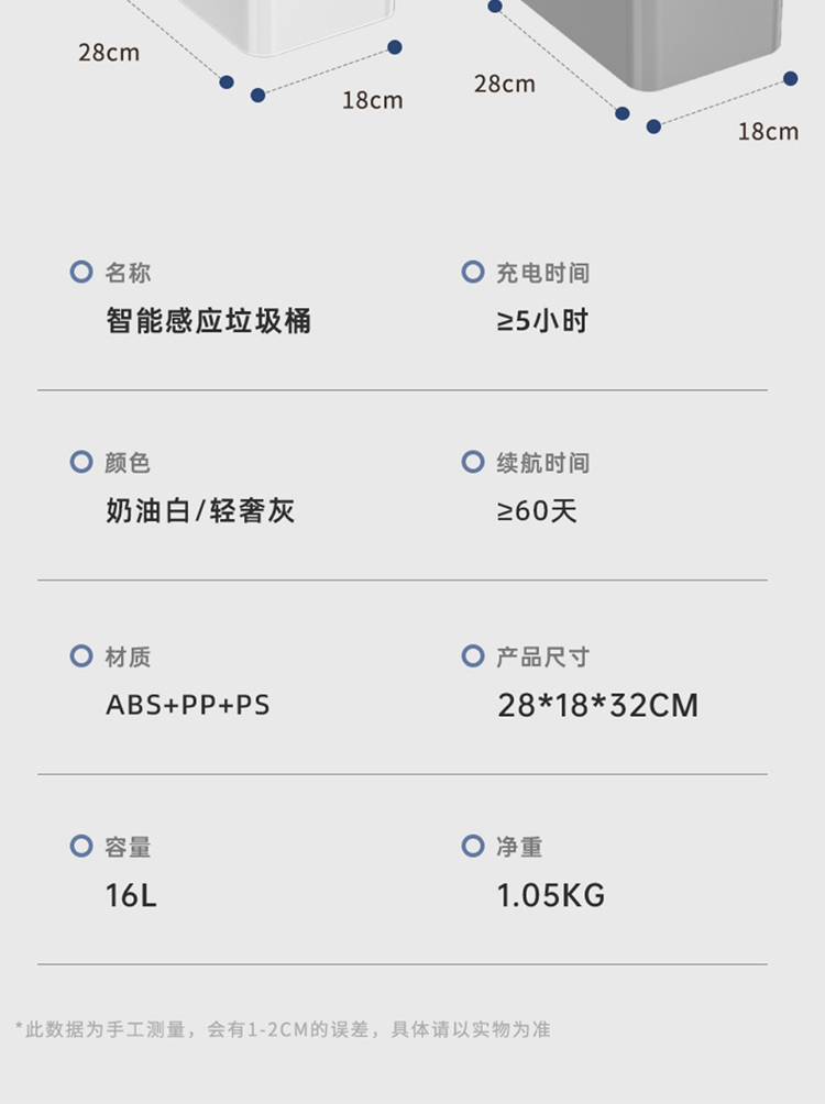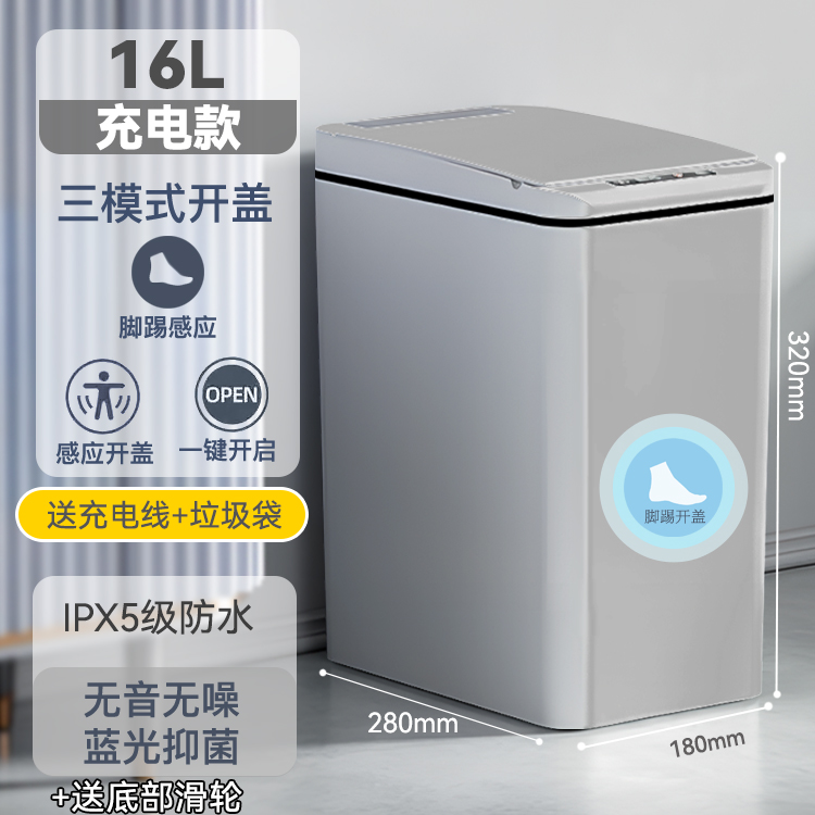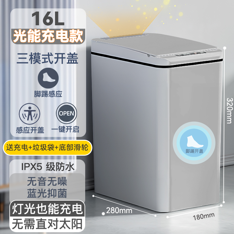 • ✅16리터 라이트 럭셔리 그레이 - 광에너지 전기 에너지 듀얼 충전 [스마트 센서 + 킥 + 버튼 + 블루라이트] 풀리 포함