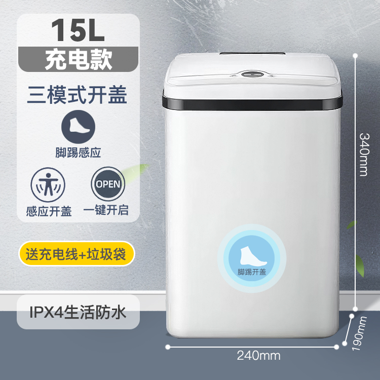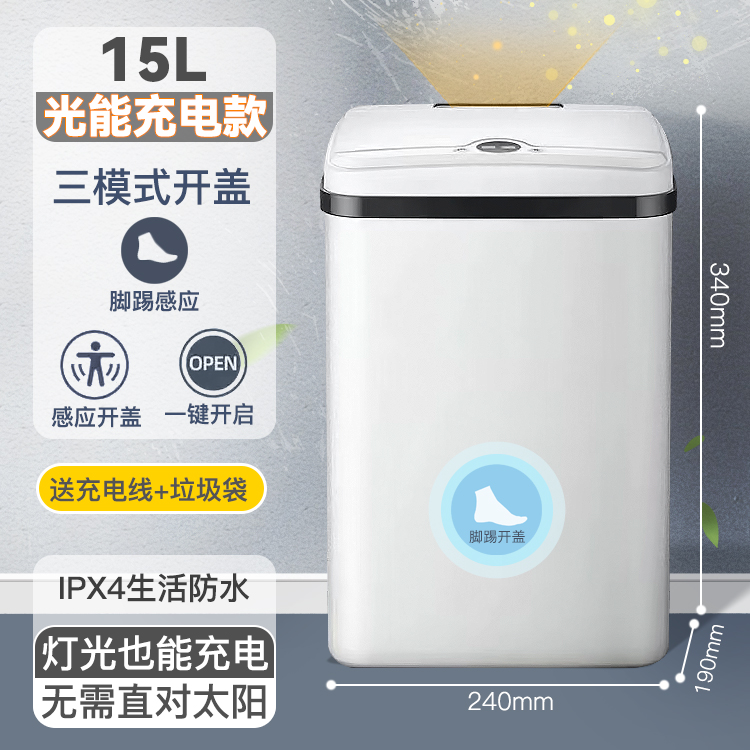• 15리터 화이트 - 광에너지 전기에너지 듀얼충전 [스마트센서+킥+버튼]