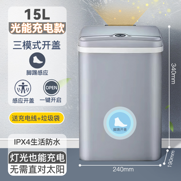 • 15리터 그레이 - 광에너지 전기에너지 듀얼충전 [스마트센서+킥+버튼]