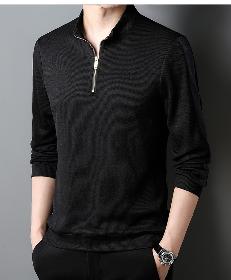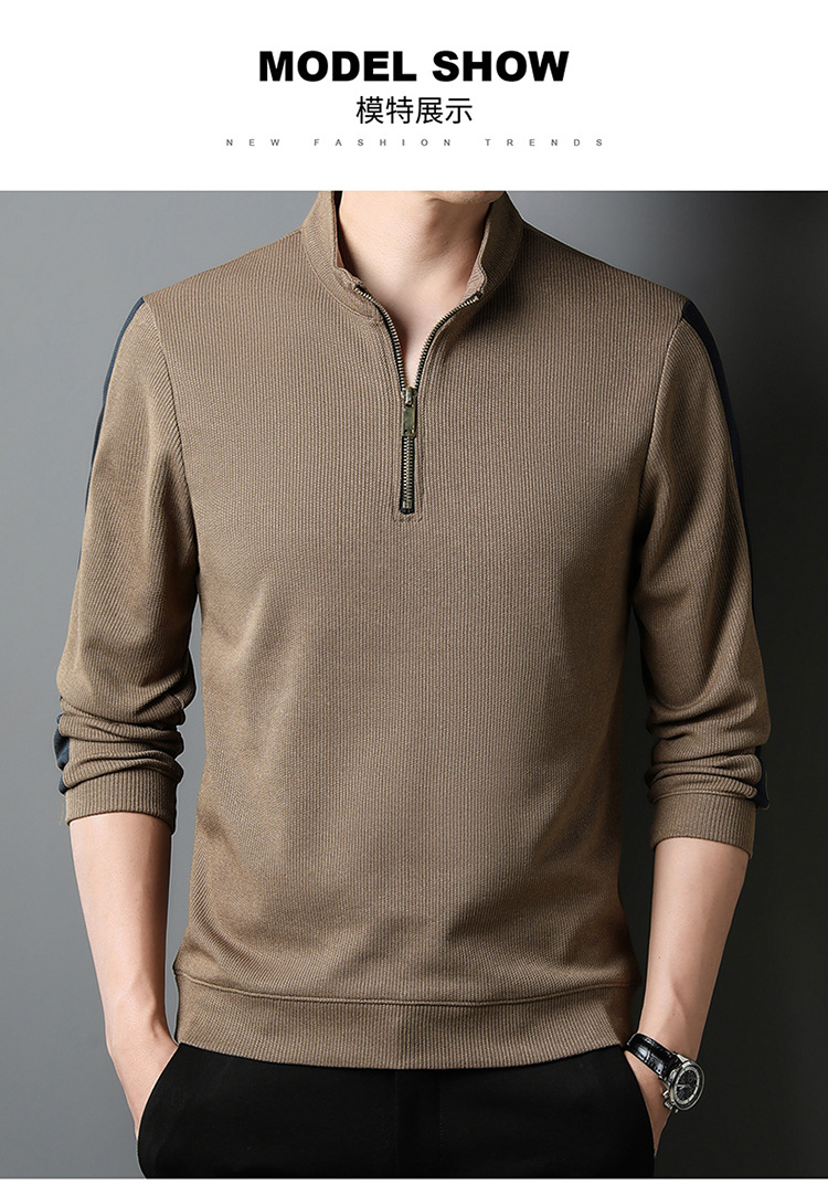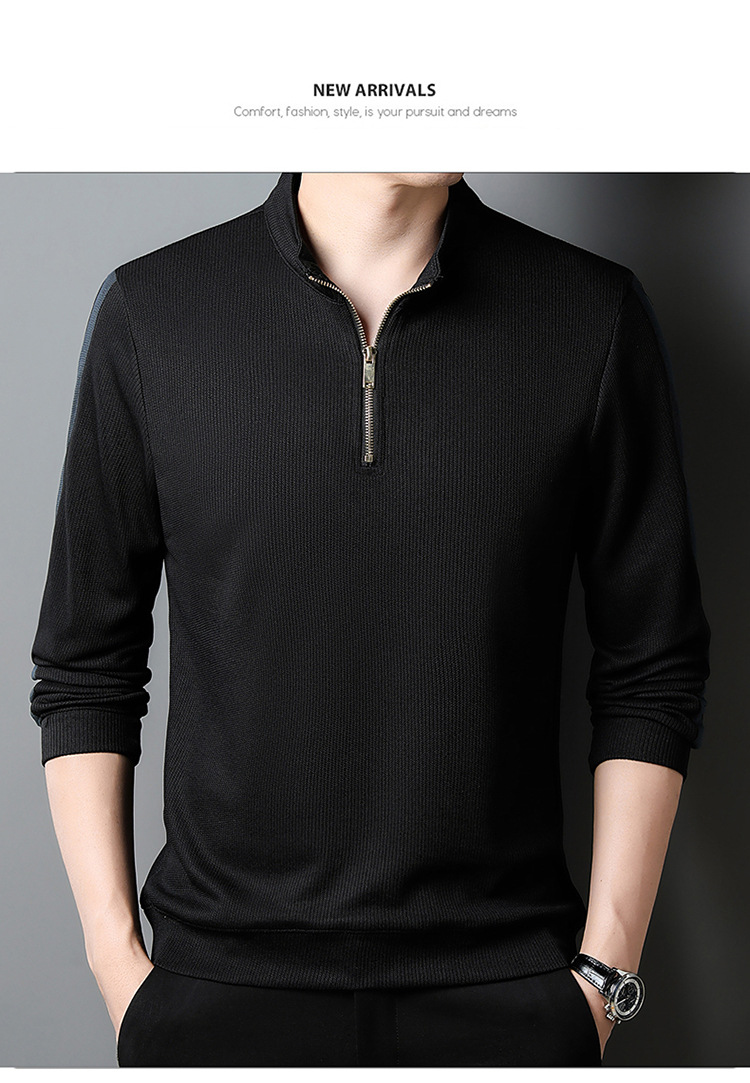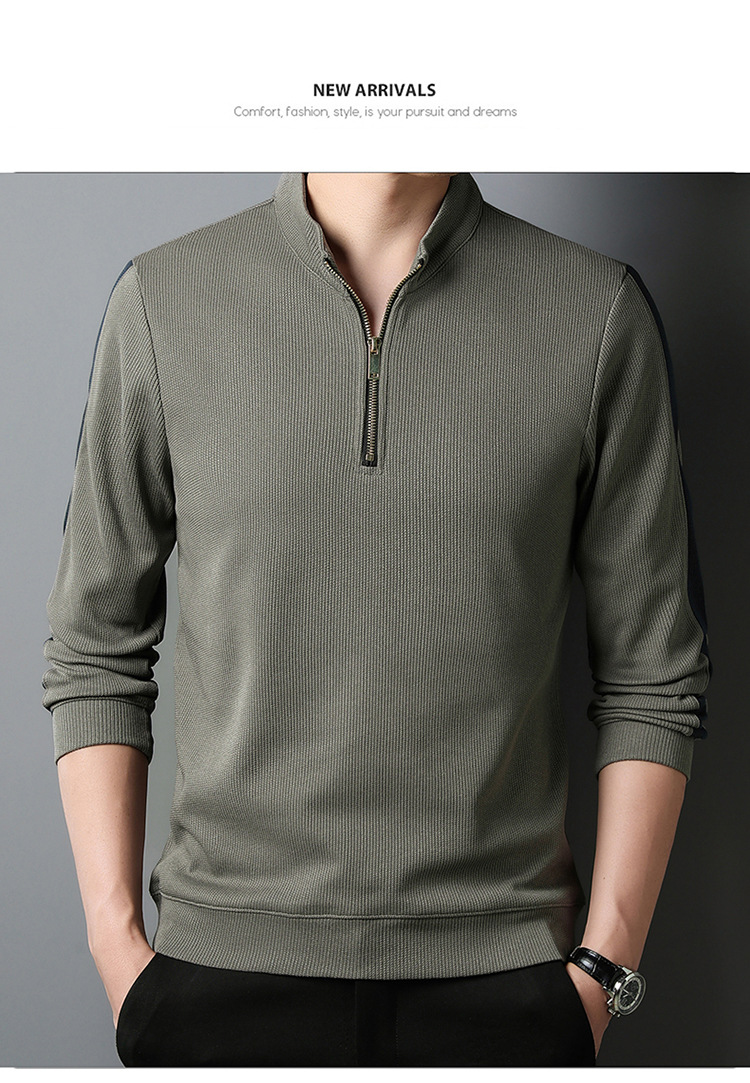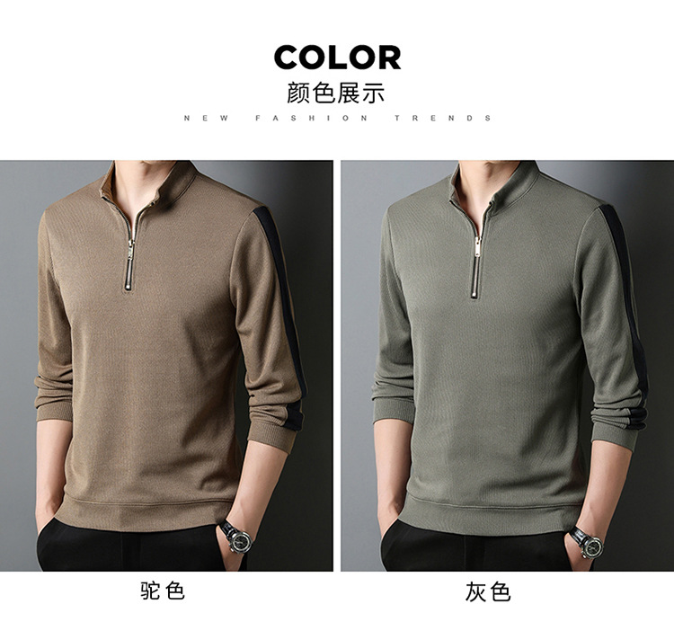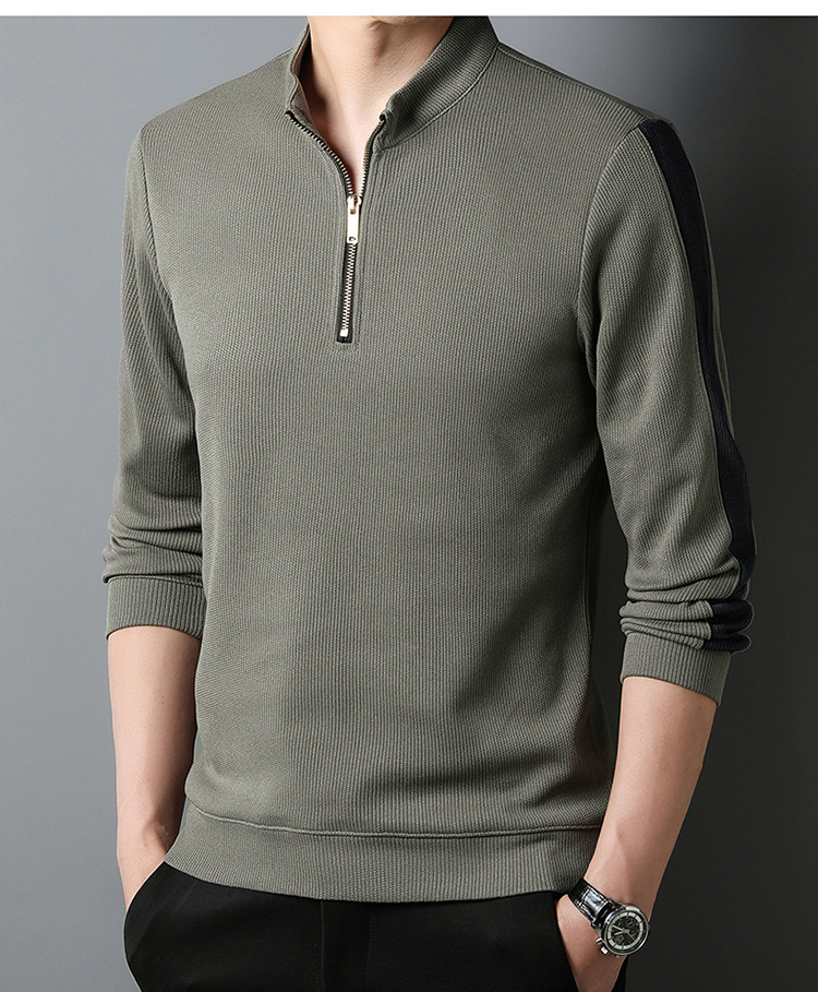 남성용 긴팔 티셔츠 얇은 봄과 가을 칼라베이스 셔츠 폴로 셔츠 반 지퍼 스웨터 남성용 유행 탑 옷