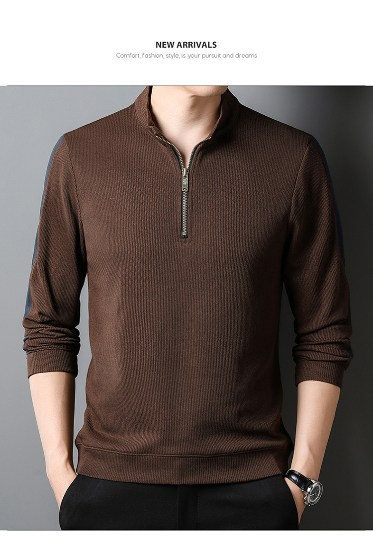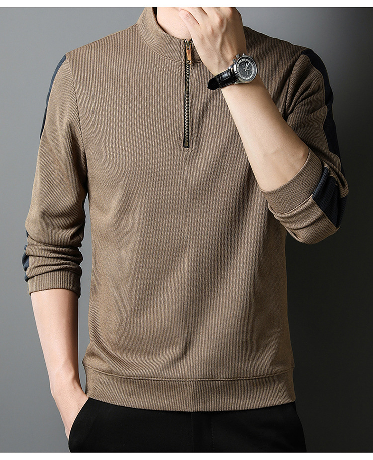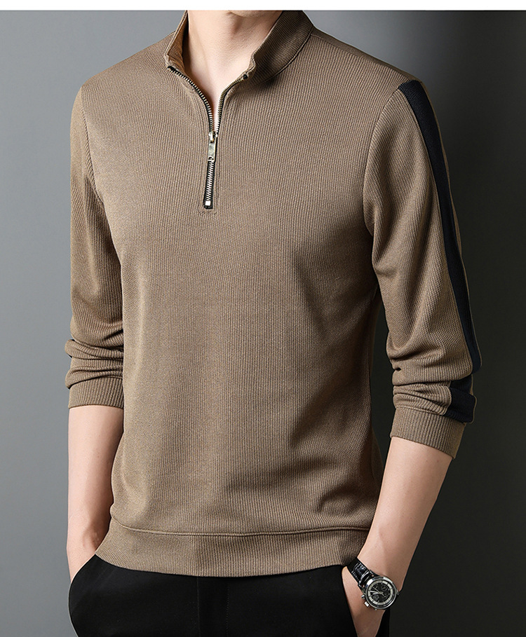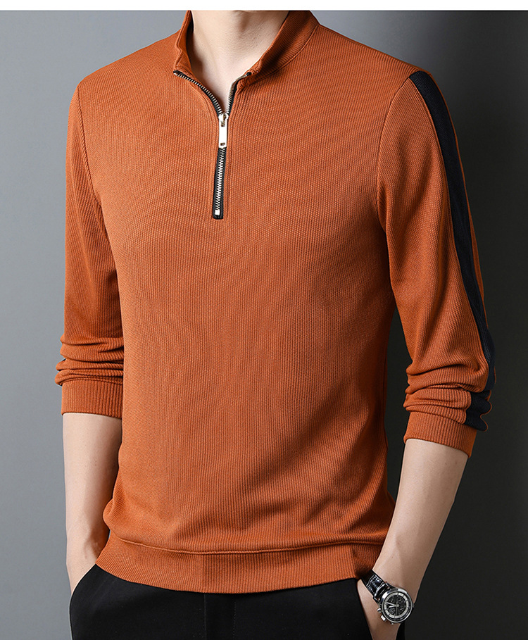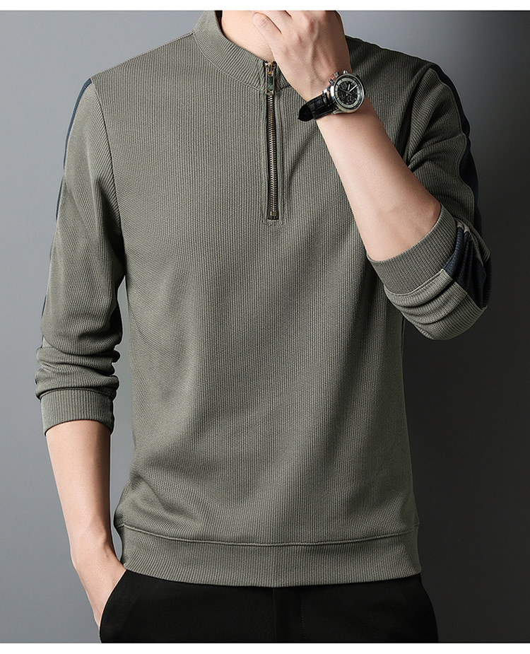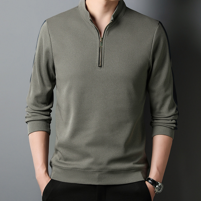 남성용 긴팔 티셔츠 얇은 봄과 가을 칼라베이스 셔츠 폴로 셔츠 반 지퍼 스웨터 남성용 유행 탑 옷