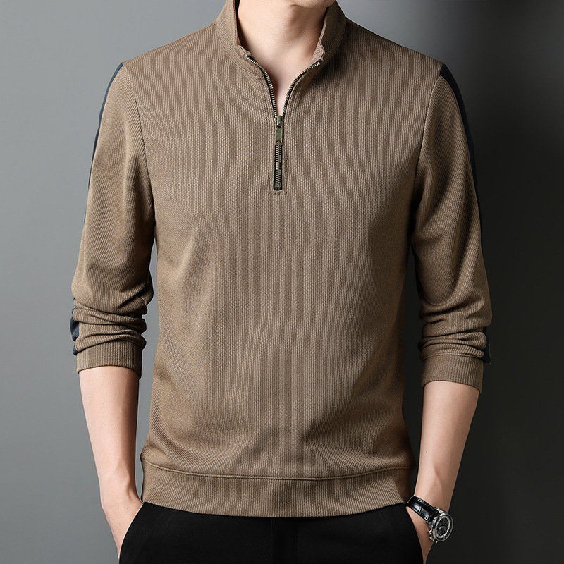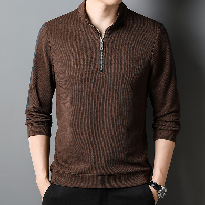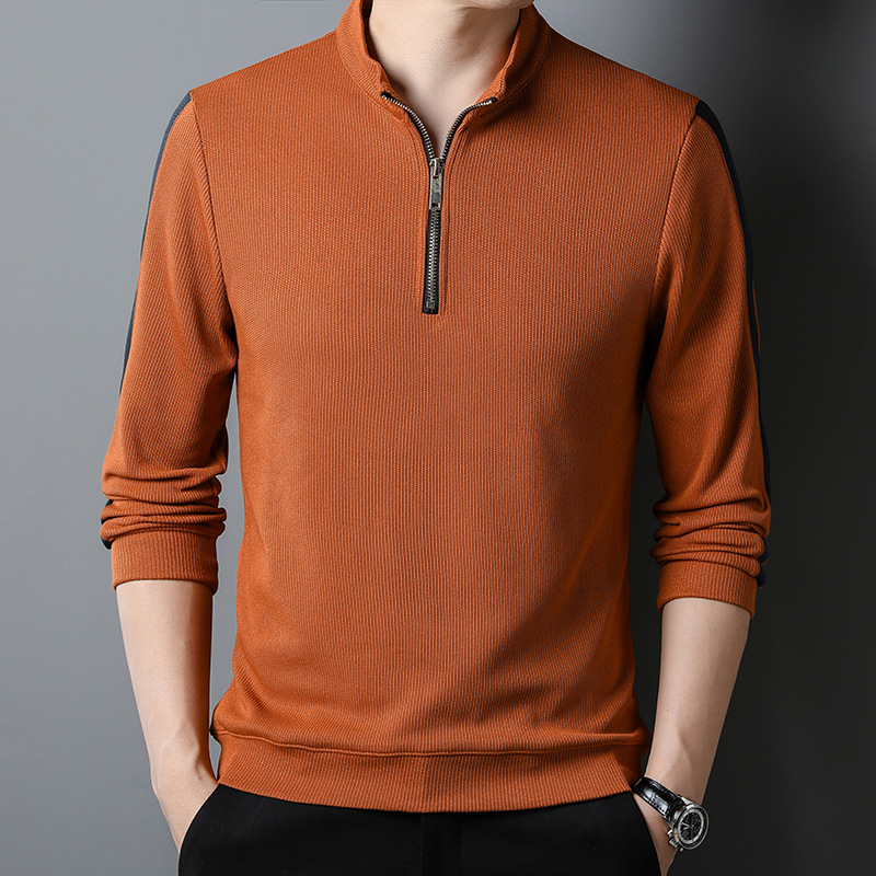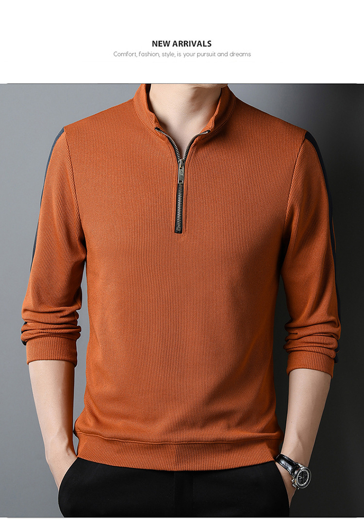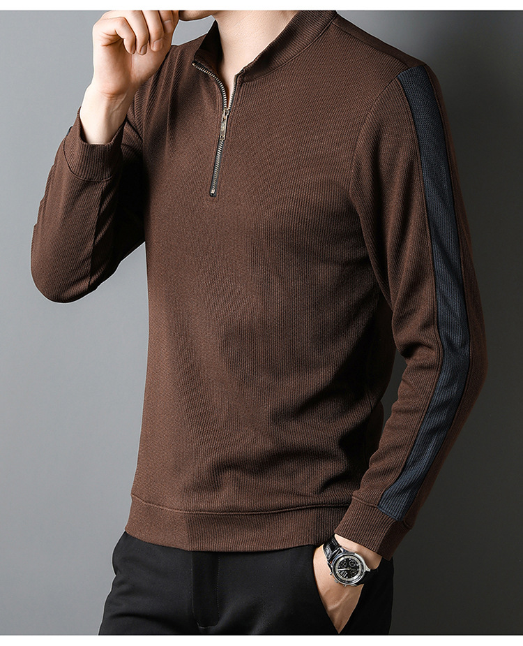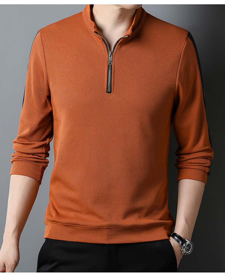 남성용 긴팔 티셔츠 얇은 봄과 가을 칼라베이스 셔츠 폴로 셔츠 반 지퍼 스웨터 남성용 유행 탑 옷