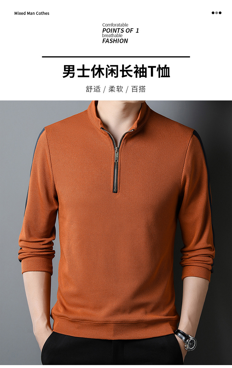 남성용 긴팔 티셔츠 얇은 봄과 가을 칼라베이스 셔츠 폴로 셔츠 반 지퍼 스웨터 남성용 유행 탑 옷스토어 가기
