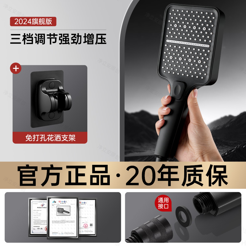 • 매트 블랙 3단 슈퍼차저 샤워 + 1.5m 호스 + 브래킷