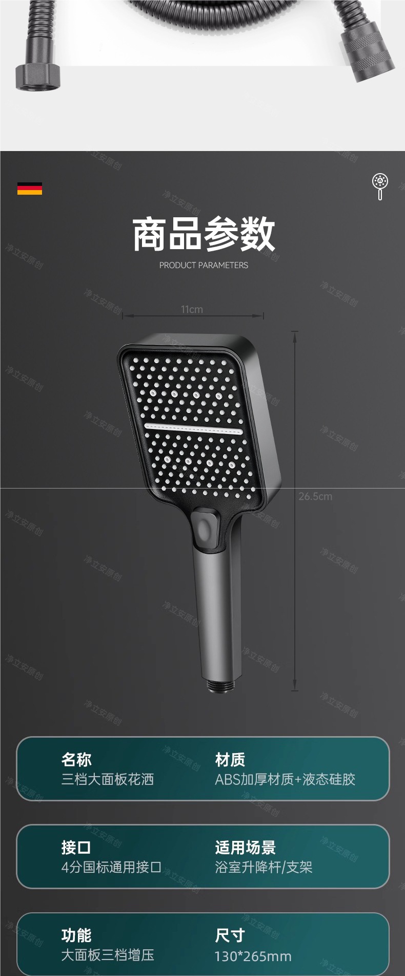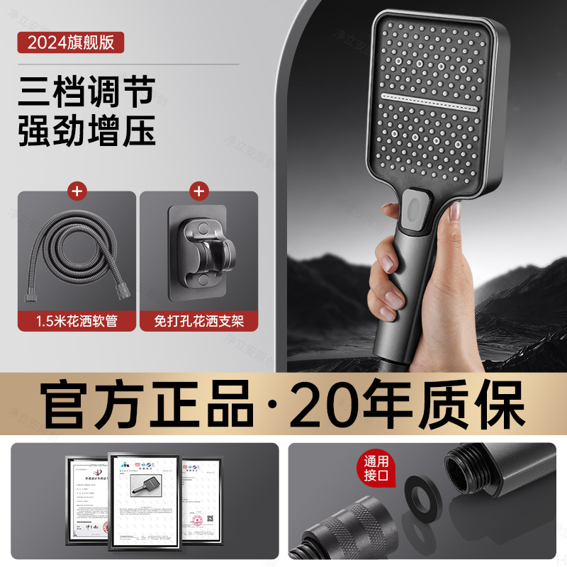 • 티타늄 그레이 3단 슈퍼차저 샤워 + 1.5m 호스 + 브래킷