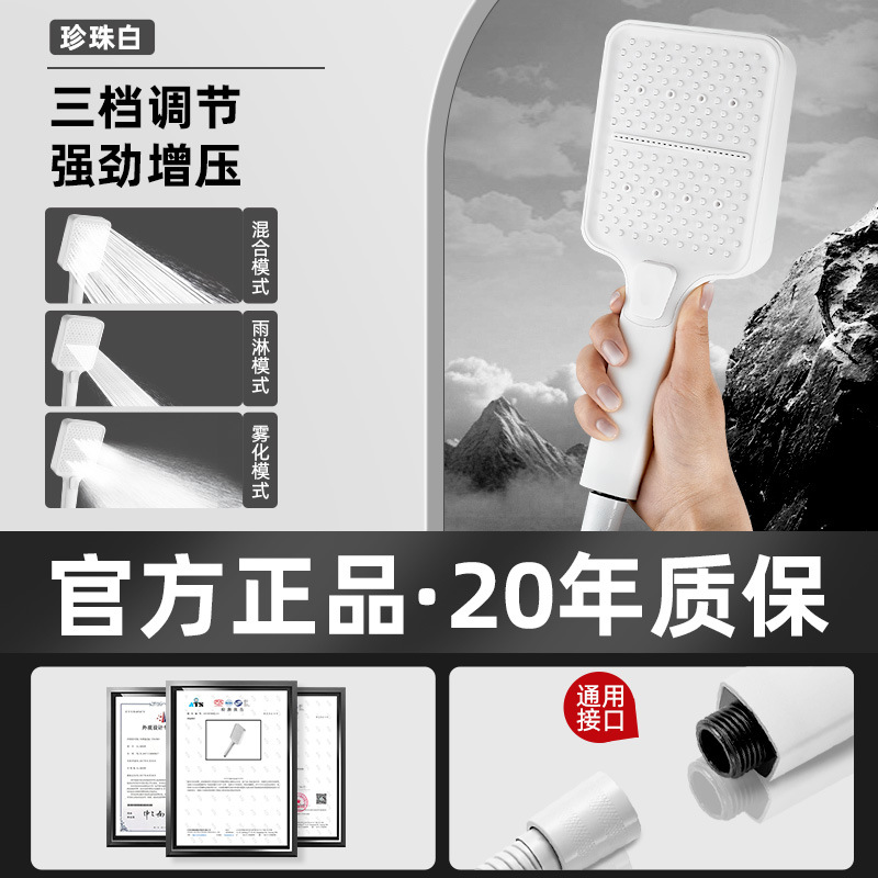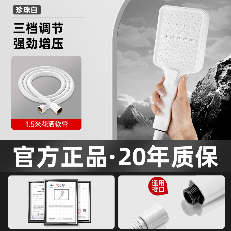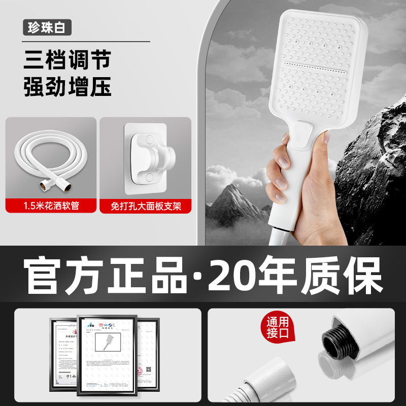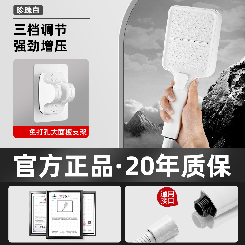 • 펄 화이트 3단 슈퍼차저 샤워 + 1.5m 호스 + 브래킷