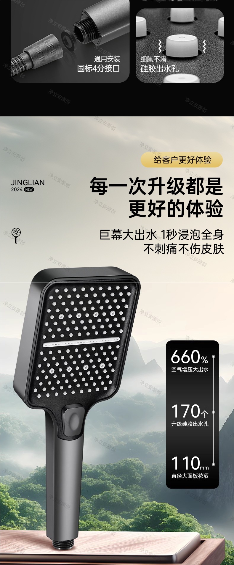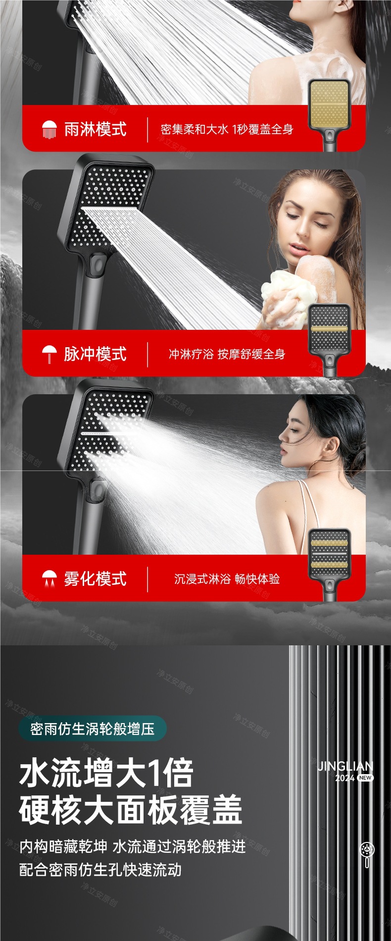 • 티타늄 그레이 3단 슈퍼차저 샤워 + 브라켓