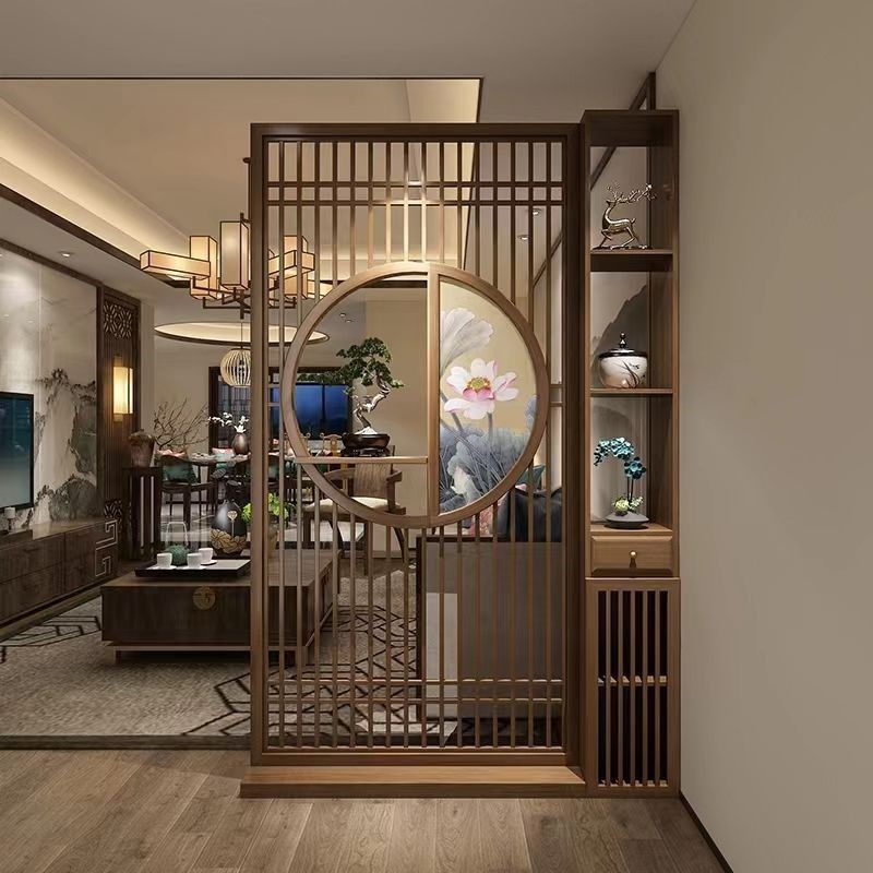 새로운 중국 스타일의 단단한 나무 스크린 입구 내각 파티션 거실 사물함 홈 모바일 간단한 대피소