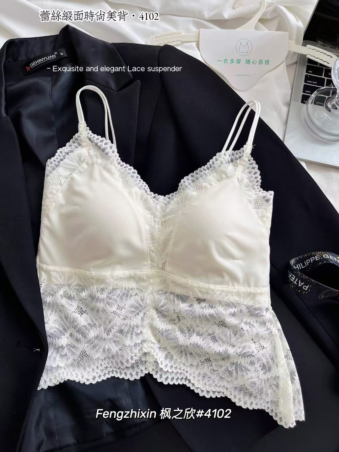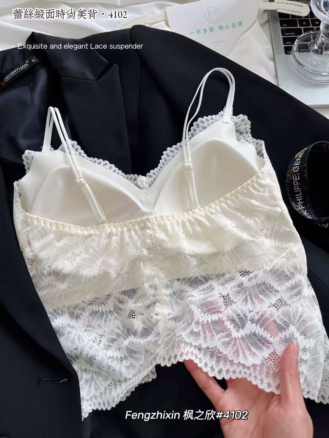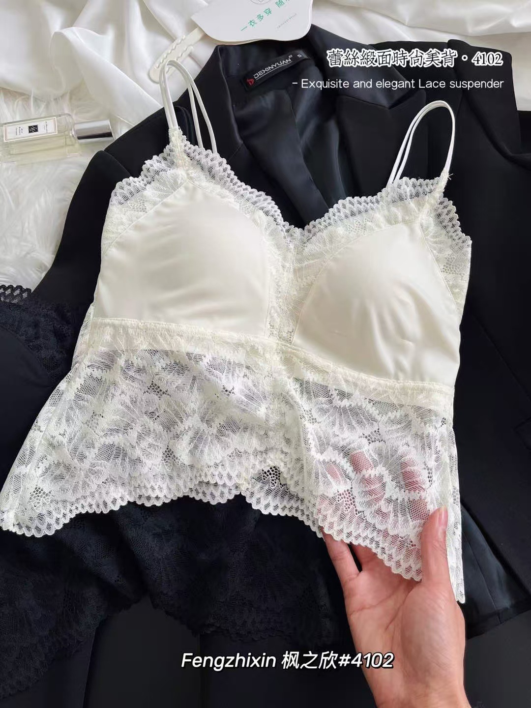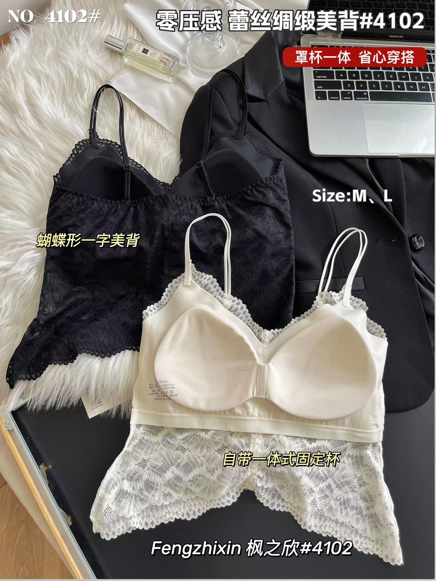 4102 레이스 새틴 아름다운 뒤 여성의 봄과 여름 프랑스 스타일 울트라 얇은 통기성 고정 컵 섹시한 나비 모양 아름다운 뒤스토어 가기