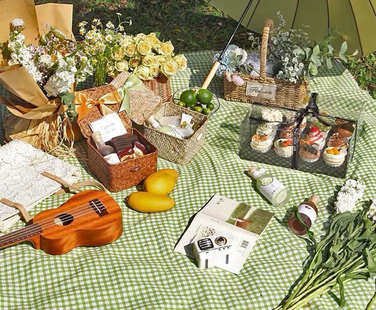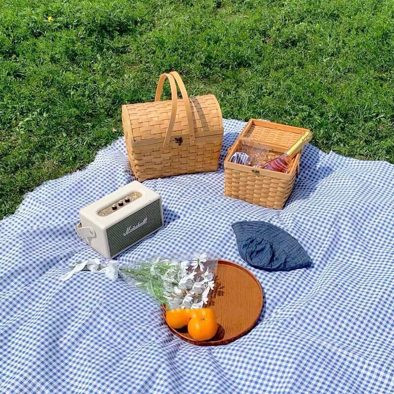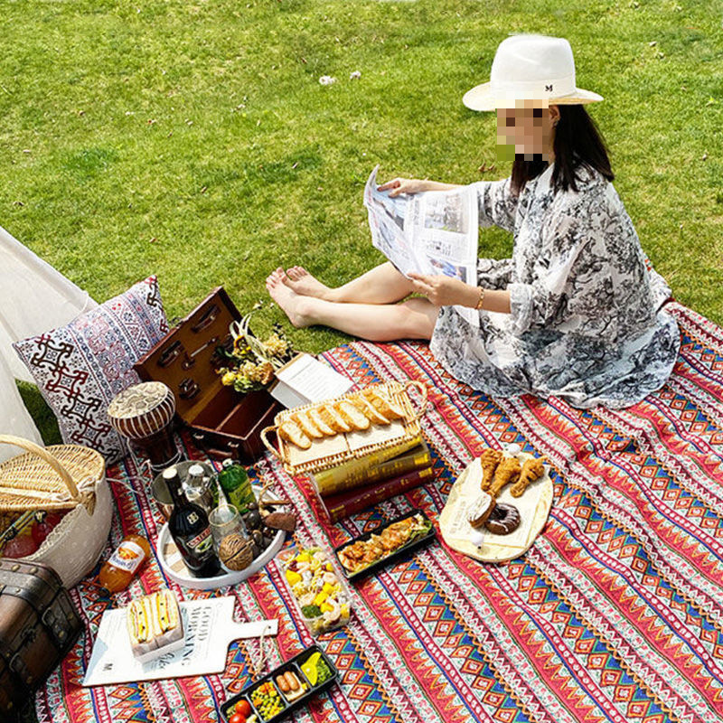 피크닉 매트 인 스타일 야외 캠핑 봄 나들이 피크닉 그물 빨간색과 린넨 피크닉 천 사진 마구간 배경 천스토어 가기