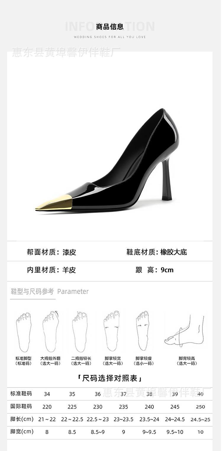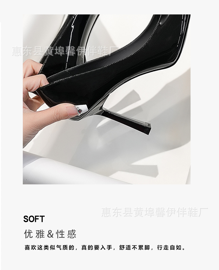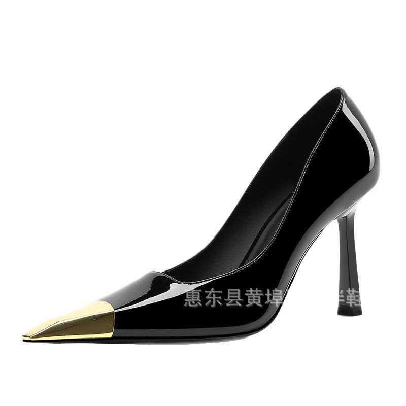 2025 년 이른 봄 새 박최영 블랙 특허 하이힐 스틸레토 힐 우아한 포인팅 프랑스 스타일 소녀 전문 싱글 레이어 신발스토어 가기